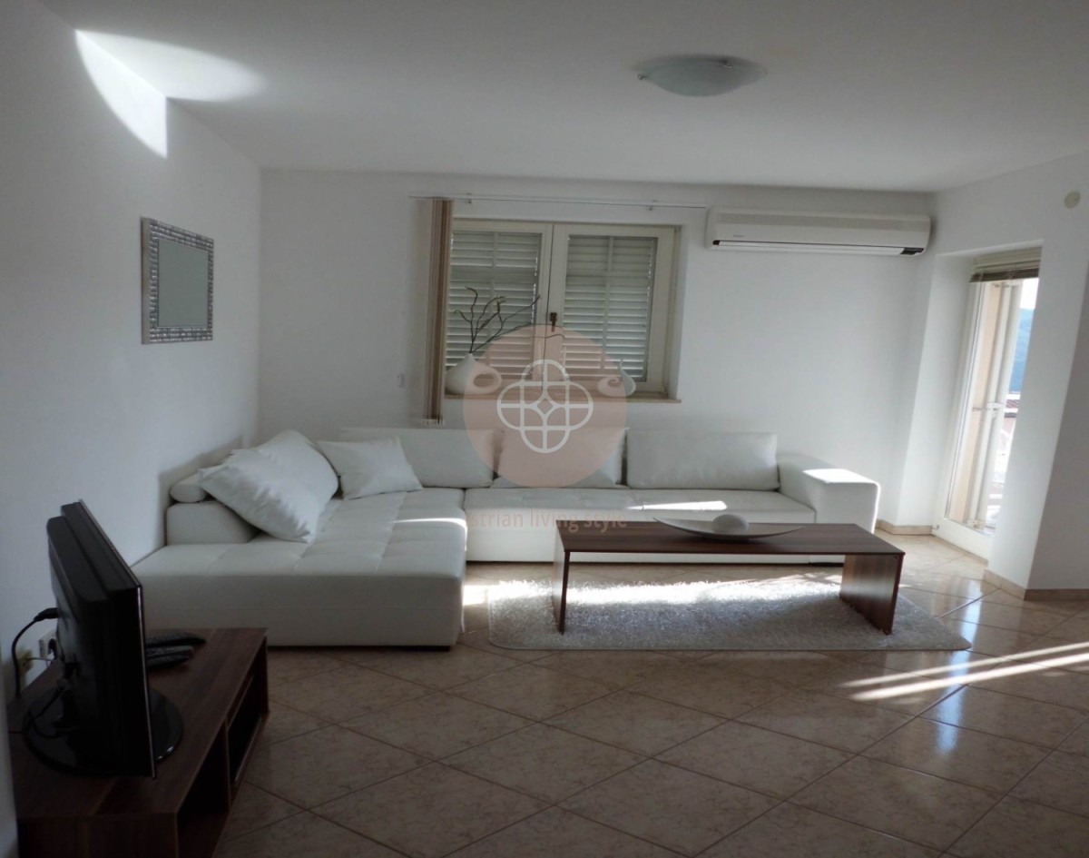 In this charming coastal town, a beautiful two-storey apartment is for sale, located on the second floor of a residential building. The apartment with a total area of 127.10 m² consists of a hallway, a kitchen with a dining room, a spacious living room, two bedrooms, a bathroom and a covered terrace with an open sea view.