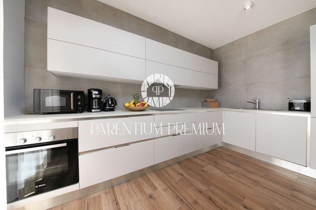 This designer villa of 355m2 with a plot of 562m2, was built in the Istrian style and is located in a small, quiet place near the town of Porec.