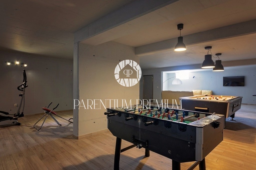 In the basement of the villa there is a playroom, fitness and a small living room.