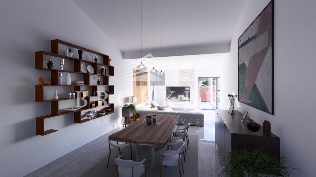 In Tinjan, in the picturesque village of Kringa, there is a beautiful location where the construction of a semi-detached house will begin next year, offering a combination of modern design and functionality, ideal for anyone seeking the perfect home or vacation house. This property spans 114 m² and will have a garden of approximately 340 m². It is just 2000 m from the center and 16000 m from the sea. With three bedrooms and three bathrooms, the house is perfect for a family or a group of friends, providing comfort and privacy for everyone.