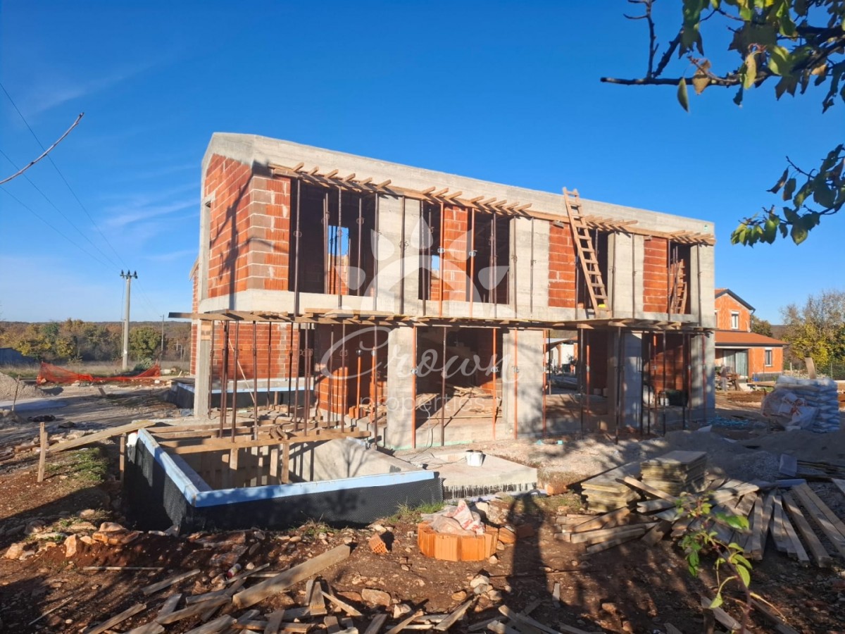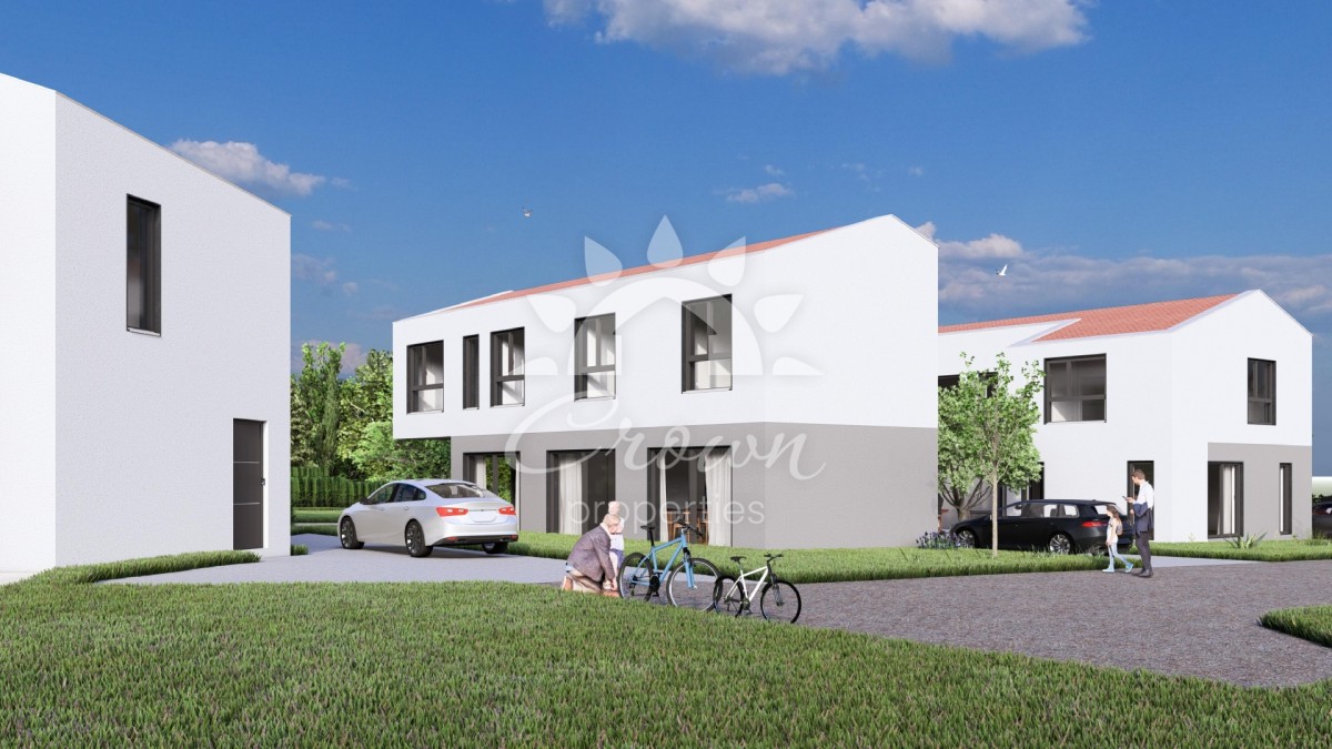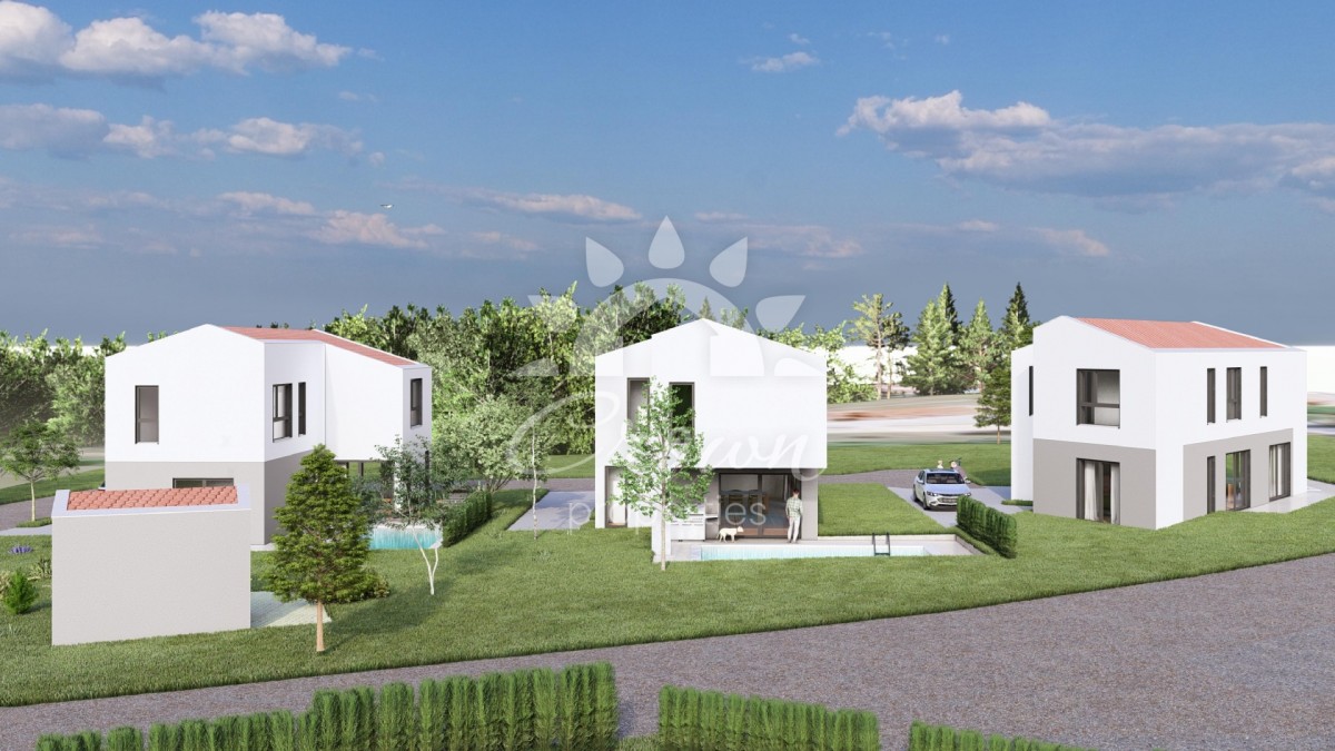 A modern house with a swimming pool is for sale, located 10 km from Vrsar, in the peaceful surroundings of Sveti Lovreč. The net area is 142.9 m², making the property ideal for family life, holidays, or tourist rental. The house is designed in a contemporary style with a focus on comfort and energy efficiency, and it is equipped with heat pumps ensuring low energy consumption year-round.