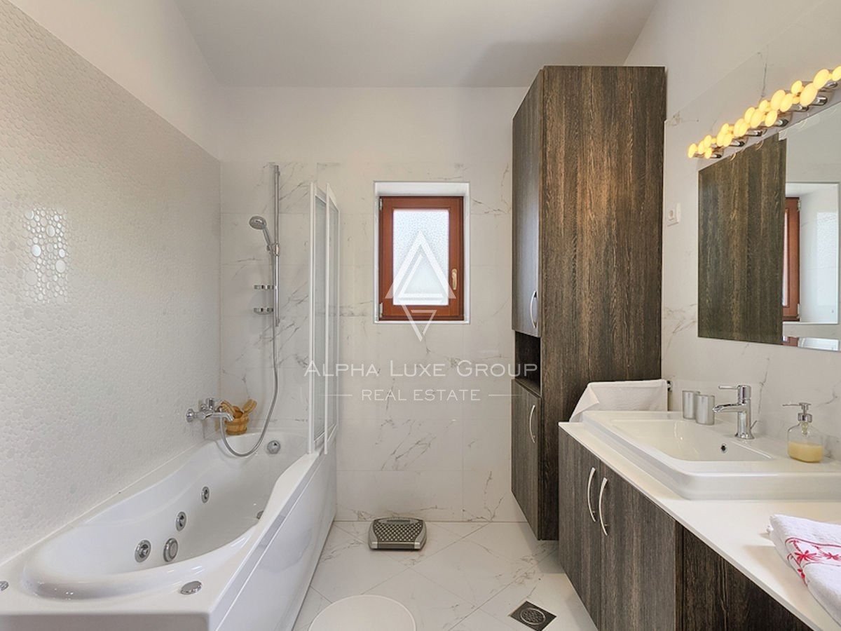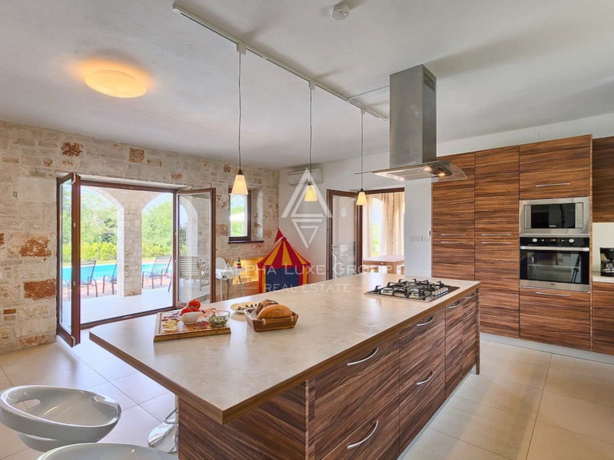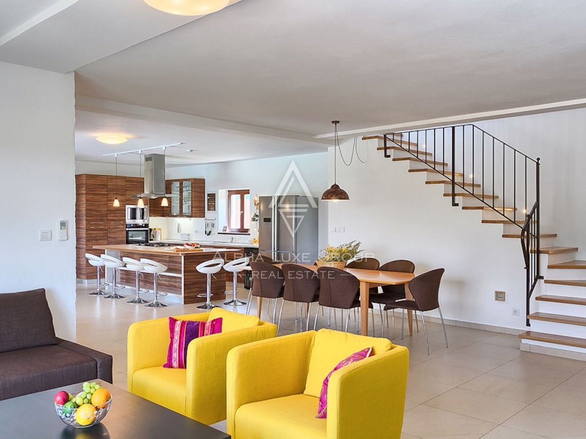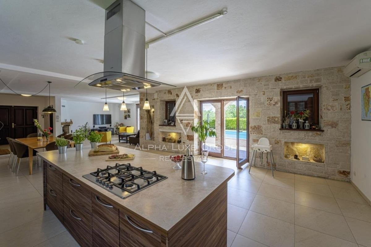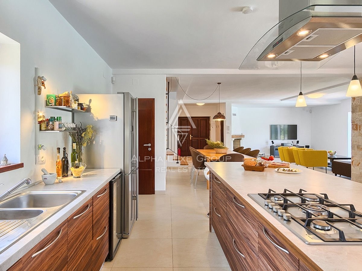 An exquisite stone villa is decorated in contemporary style. 250 m2 of living space and a spacious garden of 1400 m2 is why this property is a beautiful opportunity.