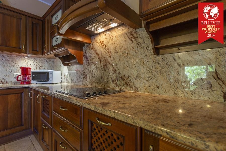 On the first floor of the villa there is a separate small apartment residence with living room, two bedrooms with double bed, terrace and bathroom. The apartment residence is connected by a massive external stone stairs to the space of a luxurious courtyard with a swimming pool.