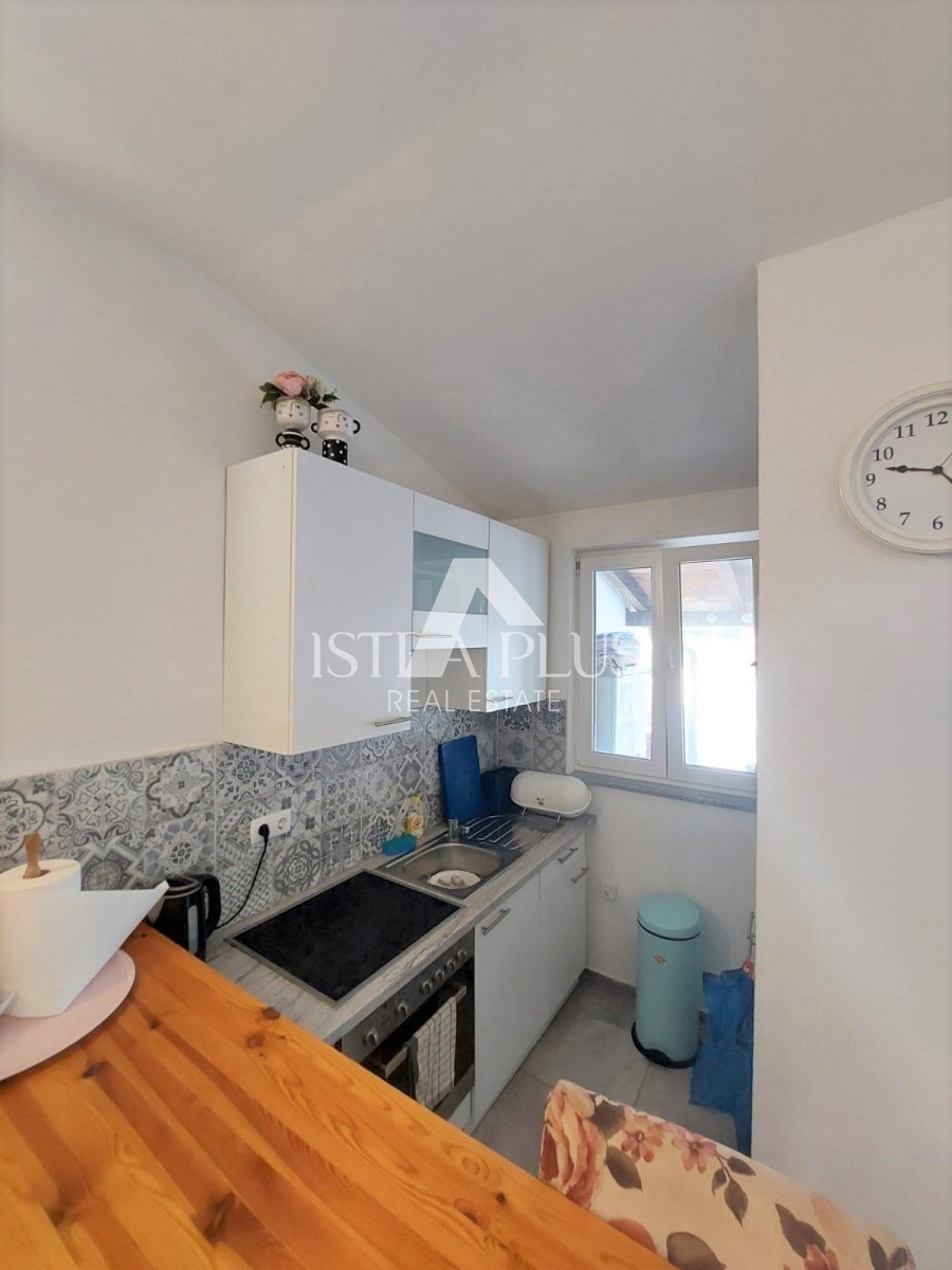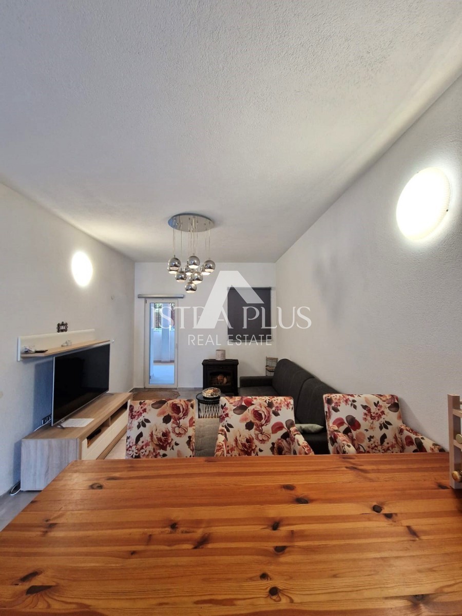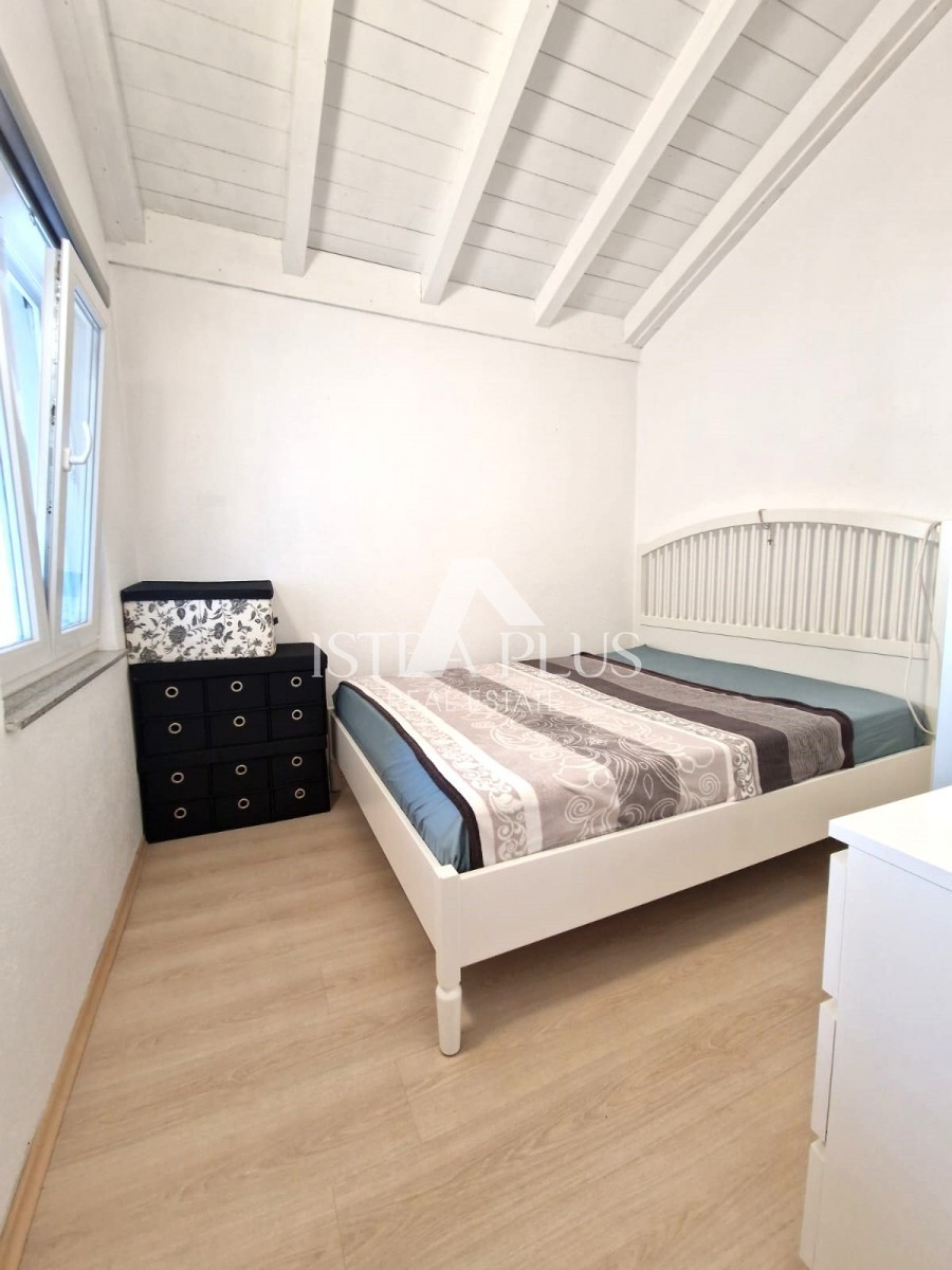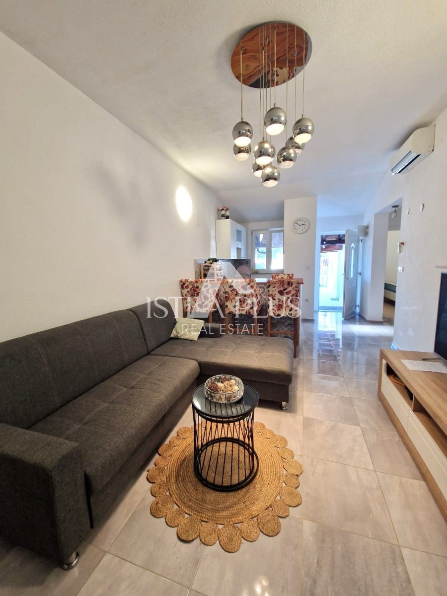 A house for sale in a row (at the end of the row), 50 m from the sea in Červar Porat, 103 m2, contains a kitchen, living room, 2 bedrooms, a gallery, a room with a bathroom in the house and 2 terraces.