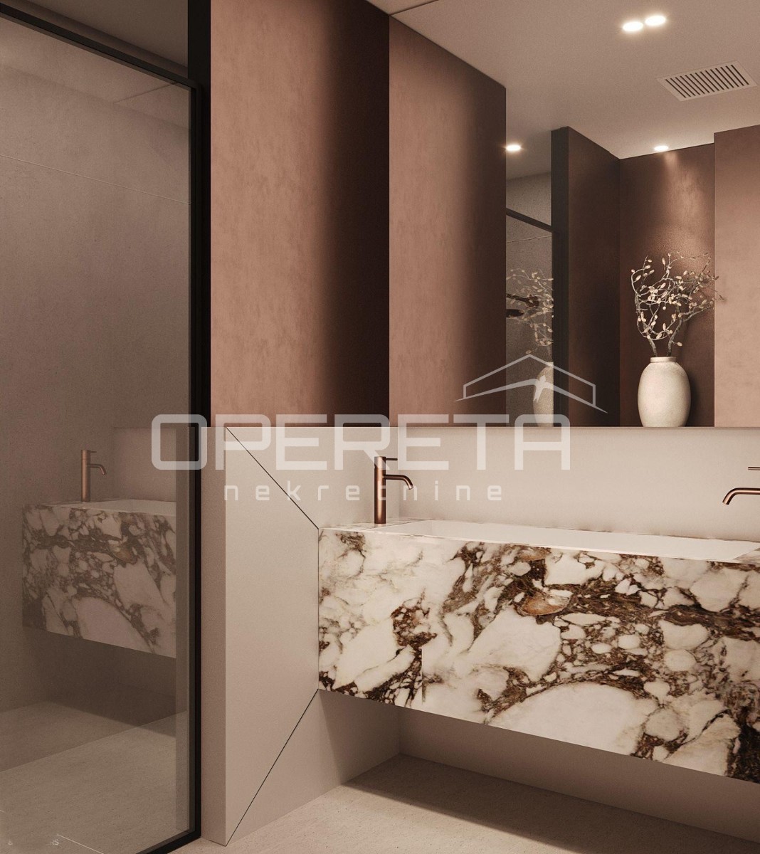 The third, also the main floor, includes an elegant entrance hall, spacious living room, dressing room, toilet, modern kitchen with dining area and covered terrace, and the central part is a 32 m2 swimming pool from which a captivating view of the sea and the surrounding landscape is offered.