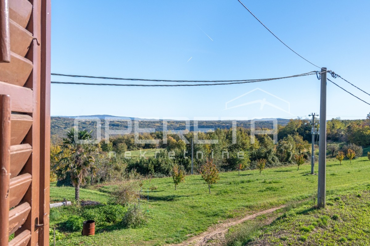 Located in a quiet village with a view of Mount Učka, this property features a house and four additional buildings, alongside a spacious plot, offering great potential to the future owner.