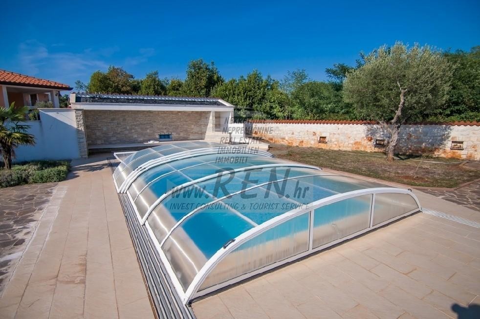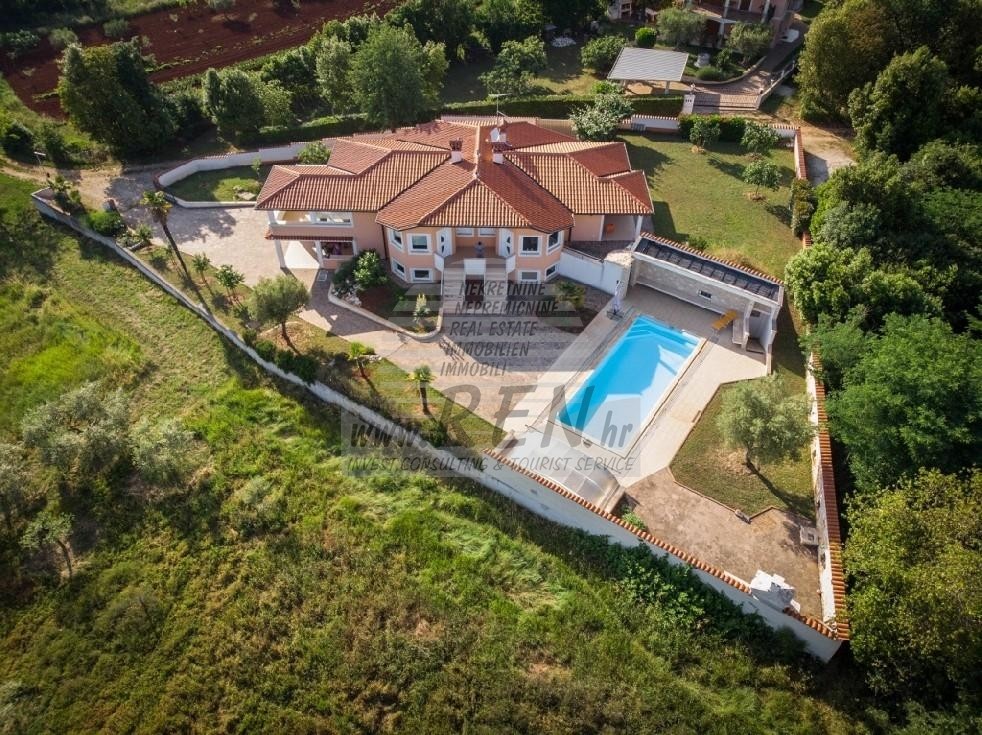 House in total surface of 400 m2, land 1622 m2, only 5 min. (600m) from sea and from beautiful natural stone beaches, 10 min. (5000m) from the center of Umag. House is composed of basement and ground floor. Within the house there are 5 bedrooms, 3 bathrooms, 3 kitchens, 3 living rooms, 3 terraces. Good isolation, fireplace, air conditioning units and fully equipped. The garden has a summer kitchen, pool 10 x 4 m and a garage