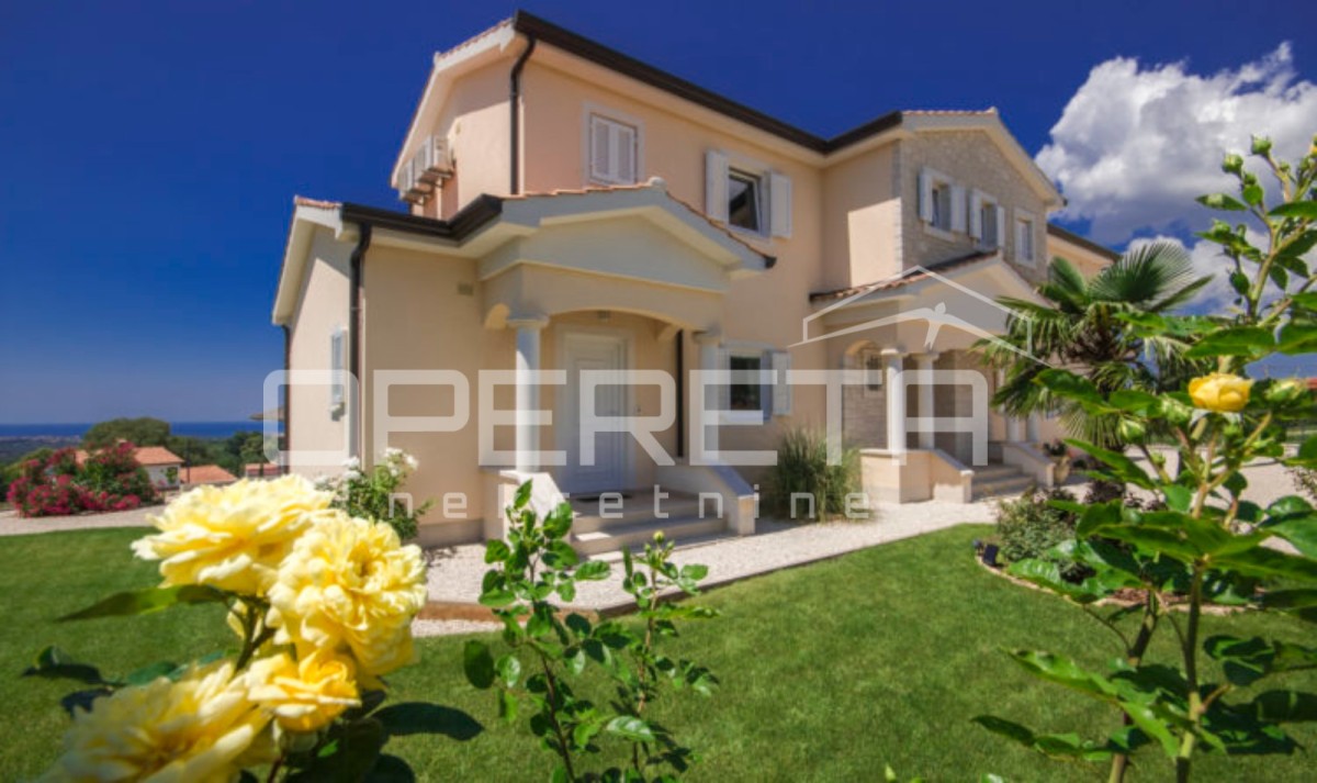 From our offer, we highlight this beautiful house with a landscaped garden and swimming pool, located on a hill near the village of Kaštelir, surrounded by vineyards and nature. The property offers views of the sea, Novigrad, Poreč, and the island of Lanterna.