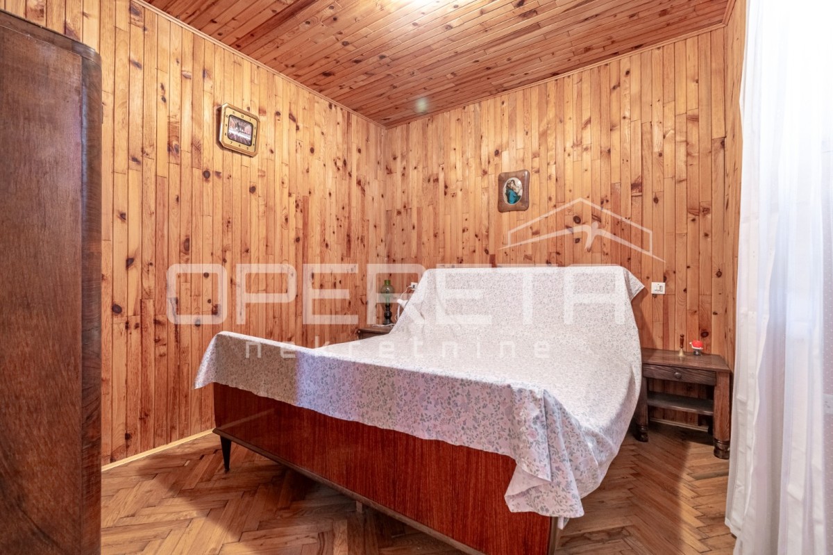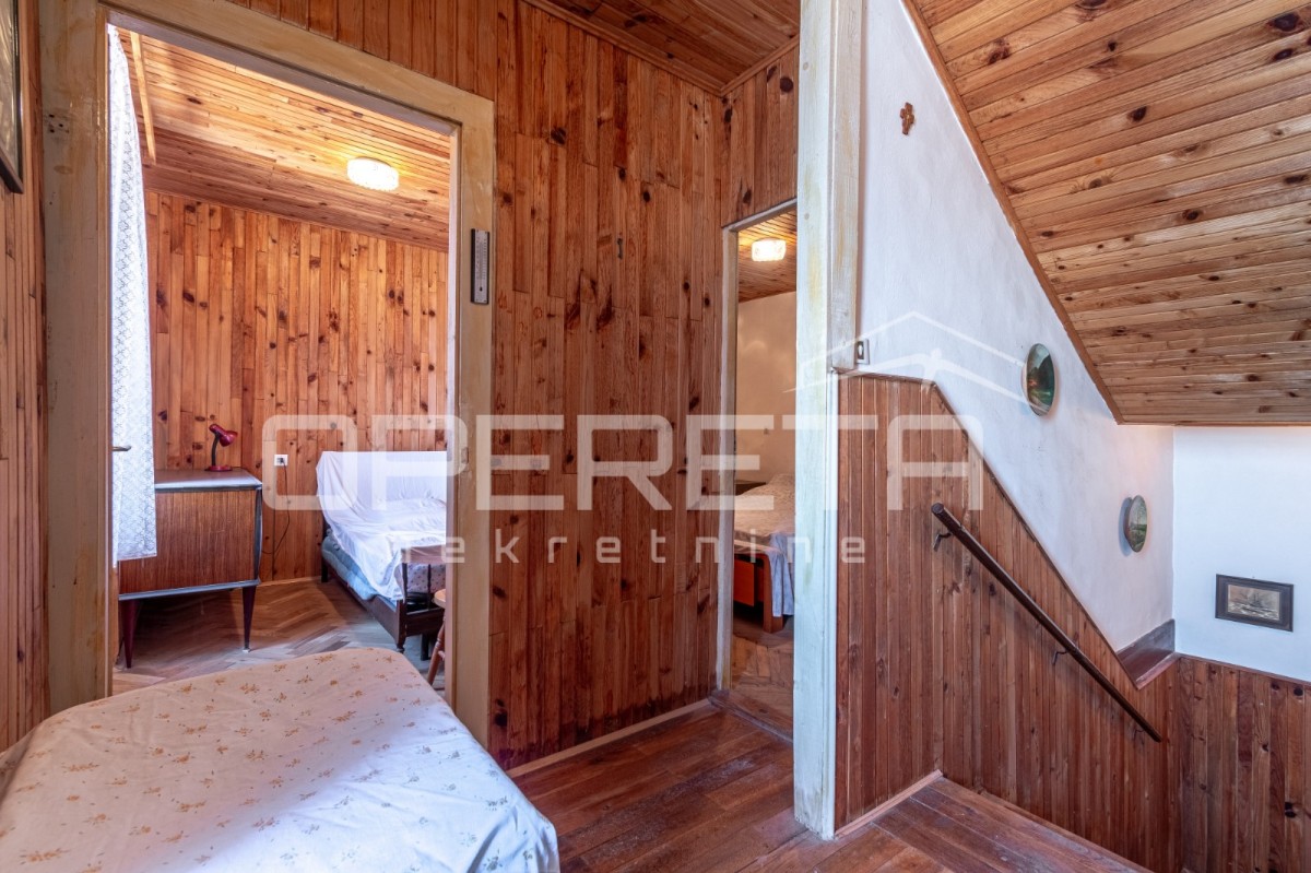 The 120 m2 yard has a woodshed of 9 m2. There is also a smaller house of 35 m2 with a height of 5 meters.