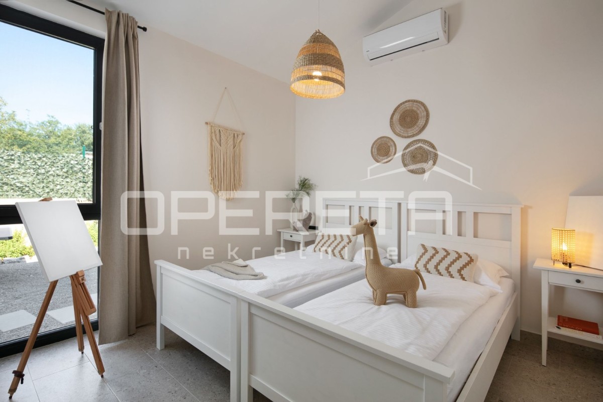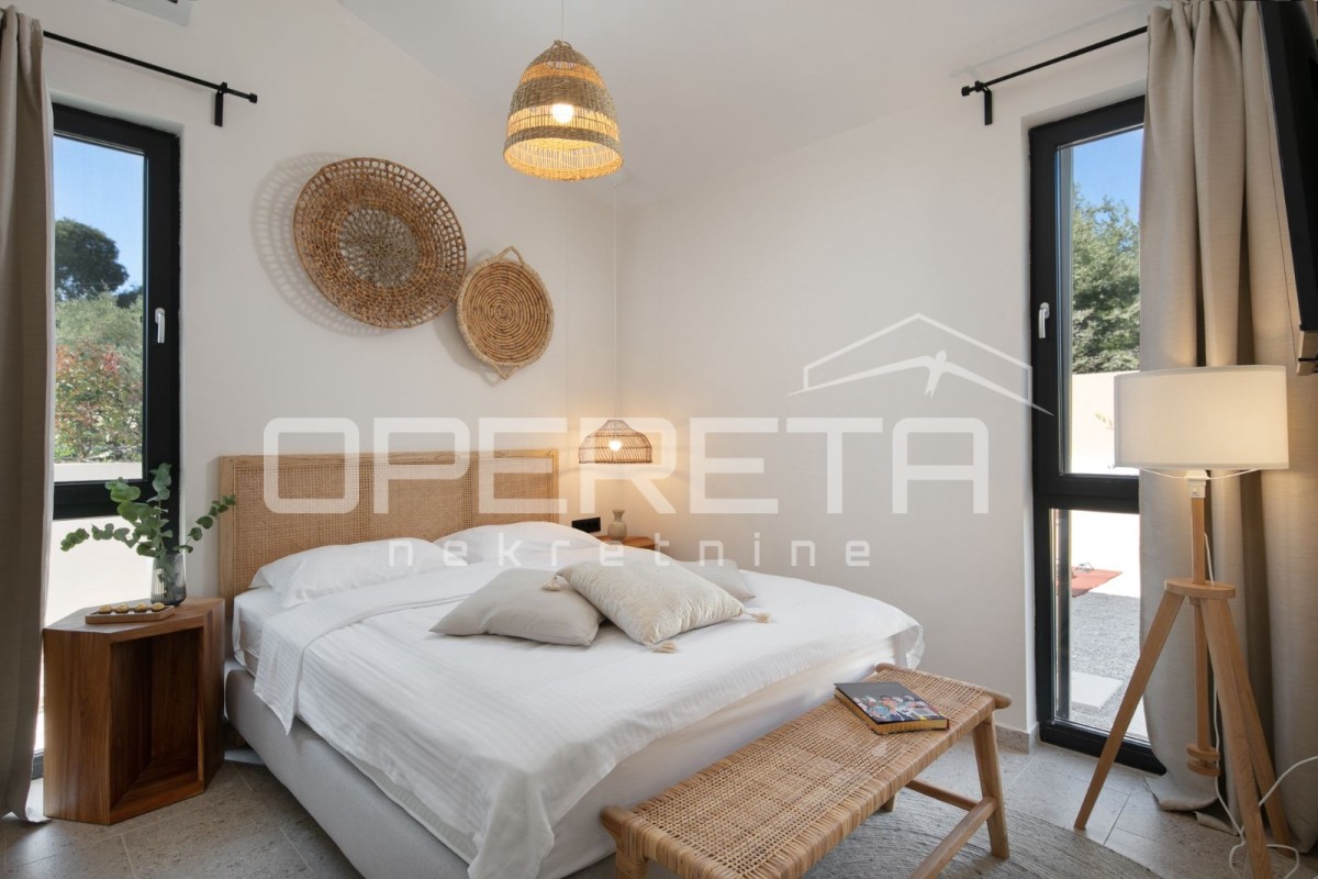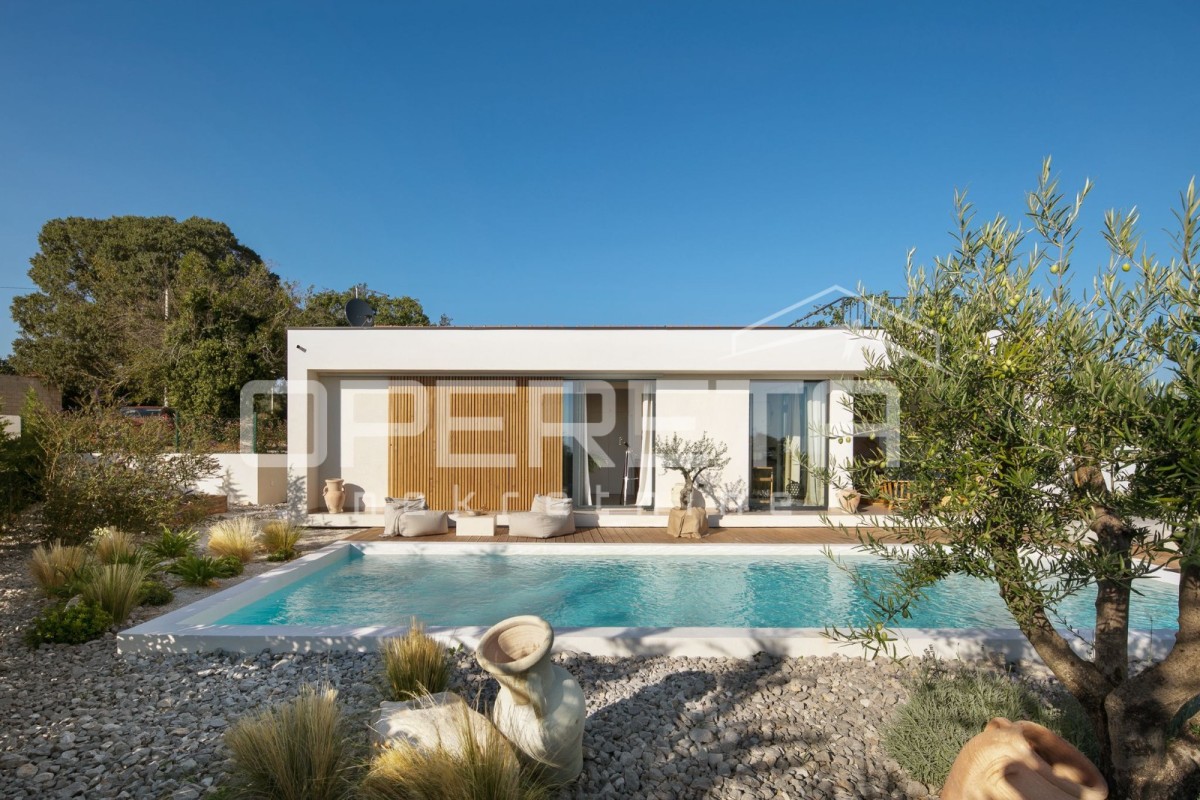 With its 103 m2 of surface area, it consists of two bedrooms and two bathrooms, and a kitchen and dining room in an open-space layout. The property boasts a large and beautifully maintained garden of approx. 1200 m2, featuring a 47 m2 swimming pool.