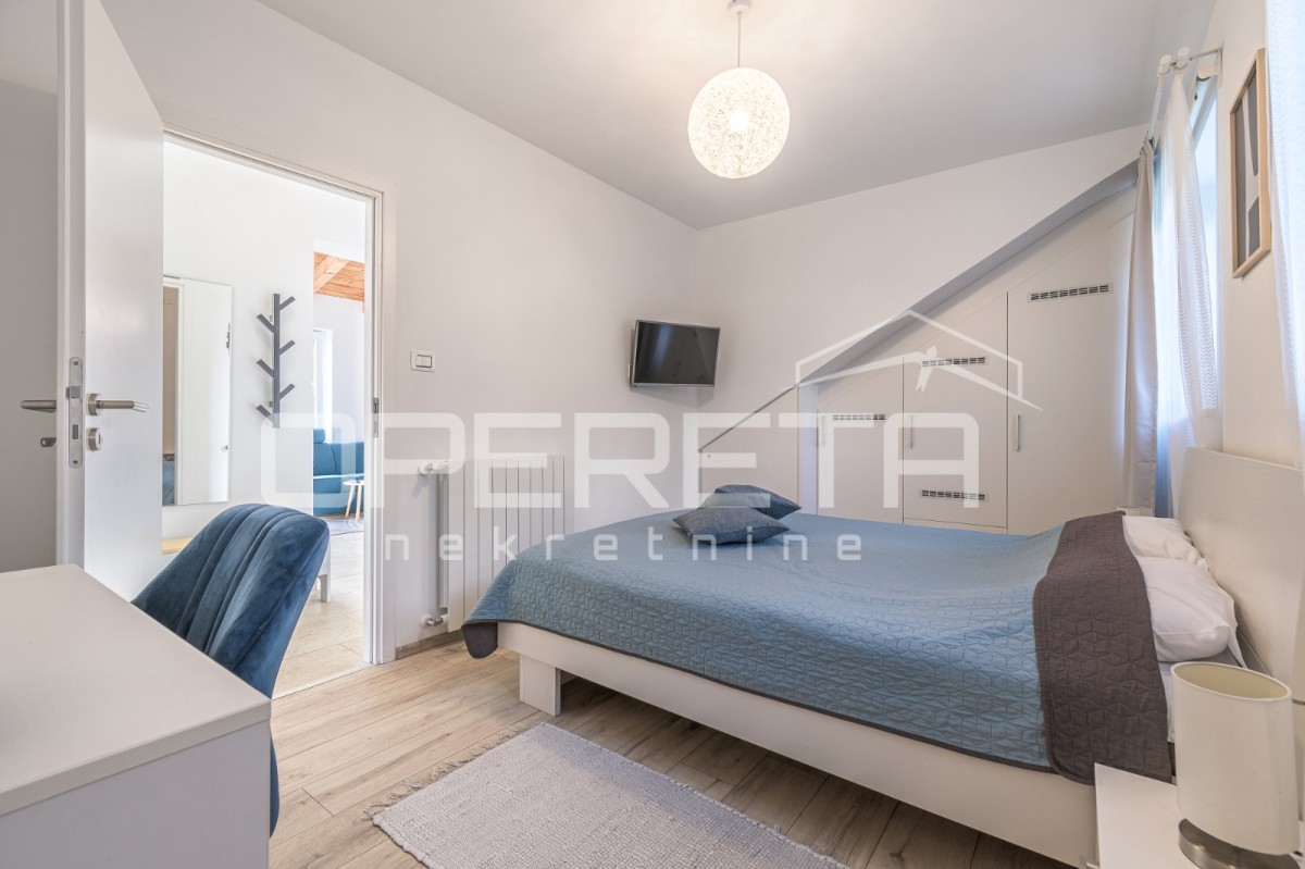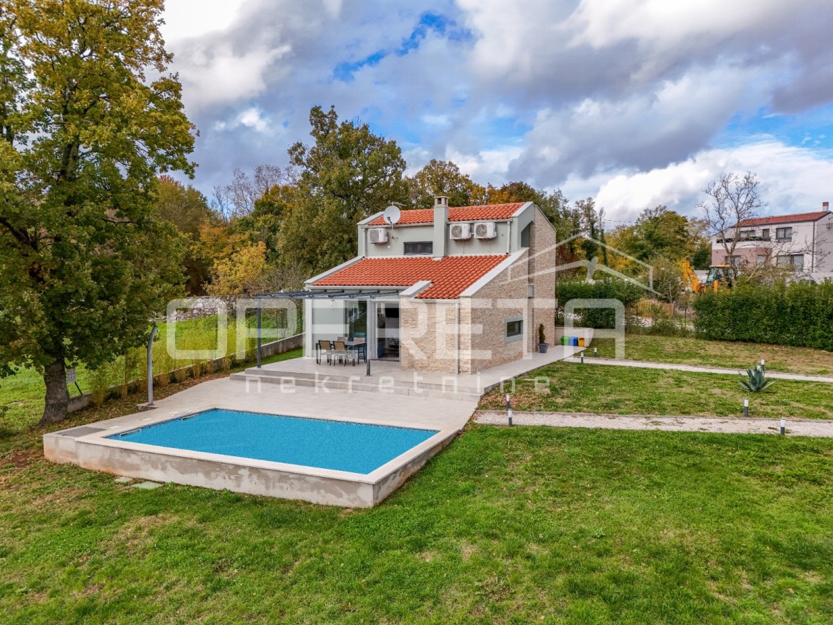 In a peaceful Istrian village, not far from Sveti Petar u Šumi and away from the city crowds, this 81 m² house is for sale. It's situated on the edge of a forest on a 781 m² plot, offering complete tranquility and a beautiful view of nature.