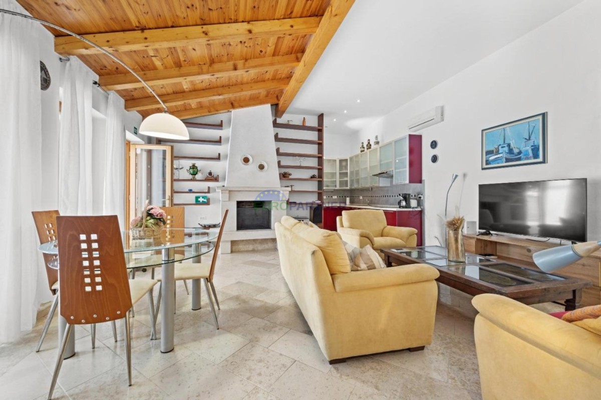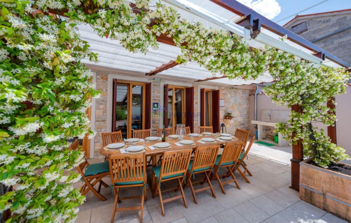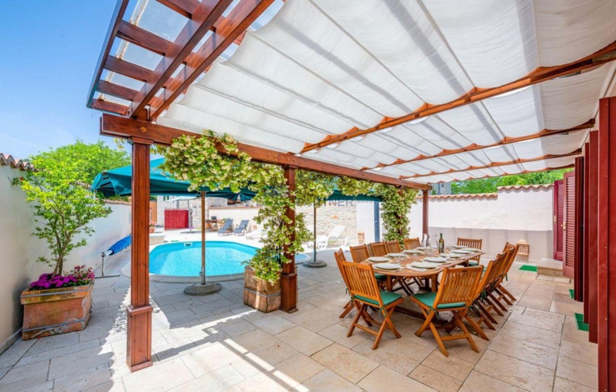 We offer for sale a beautiful stone house with an additional building and a swimming pool in a quiet settlement not far from Kanfanar. The house has been completely renovated in harmony with nature, with authentic thick stone walls combined with wooden elements and elements of modern comfort.