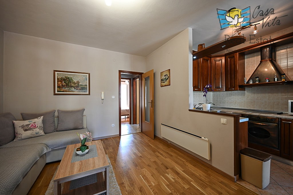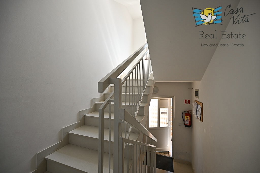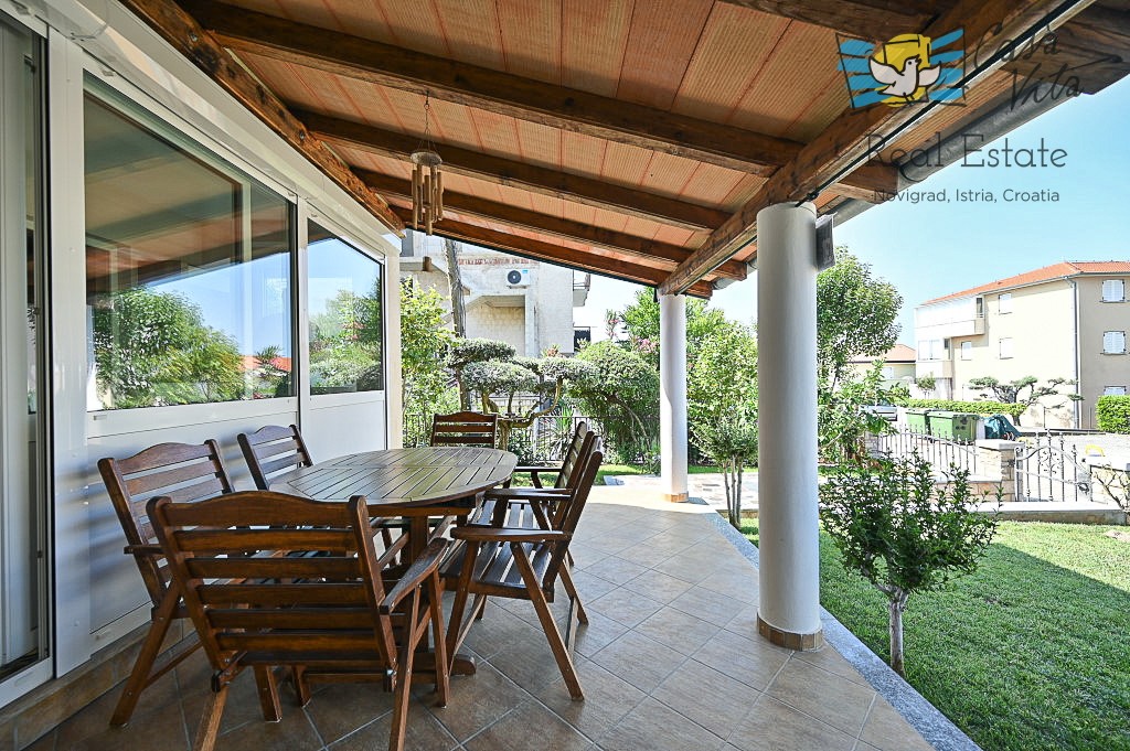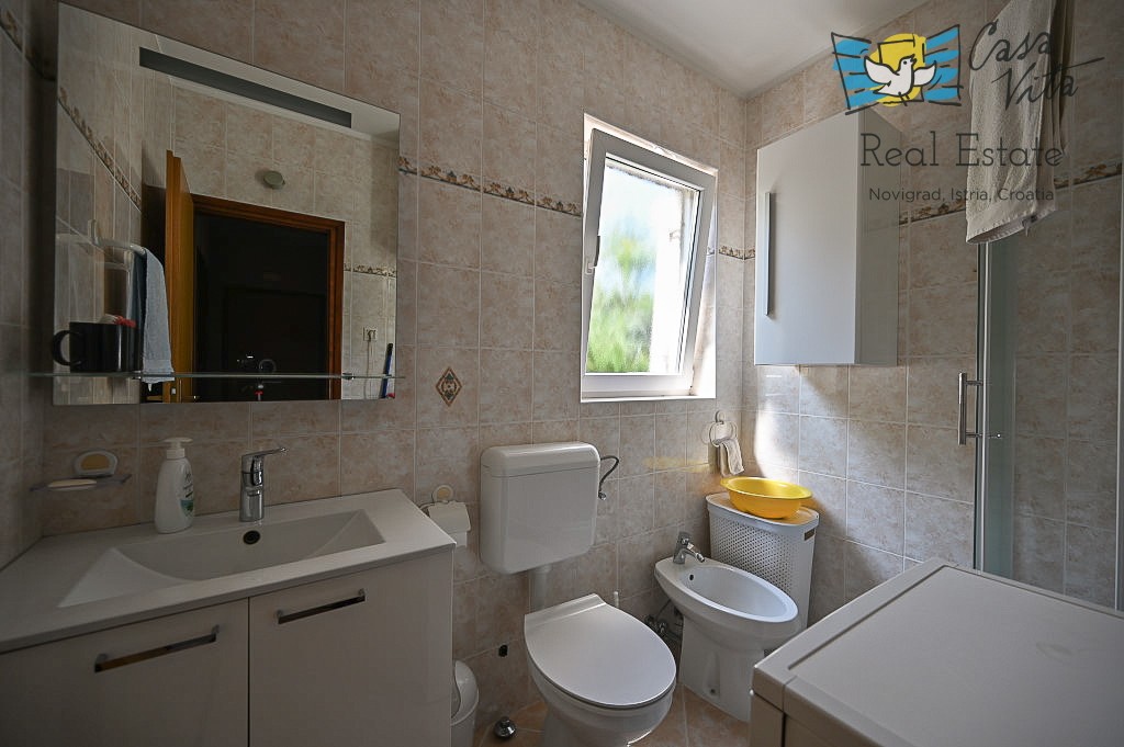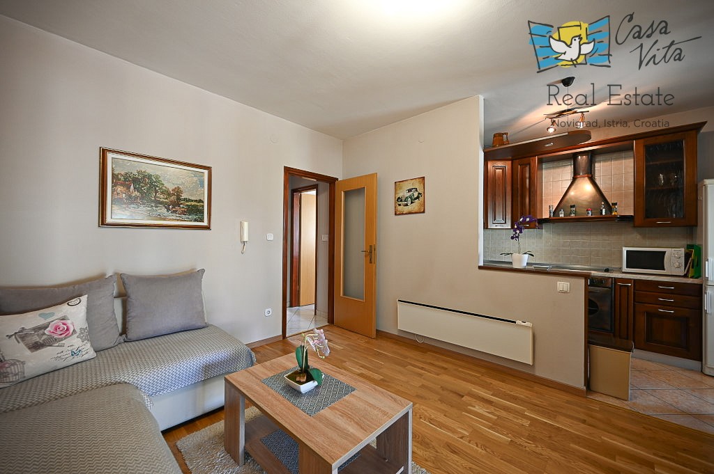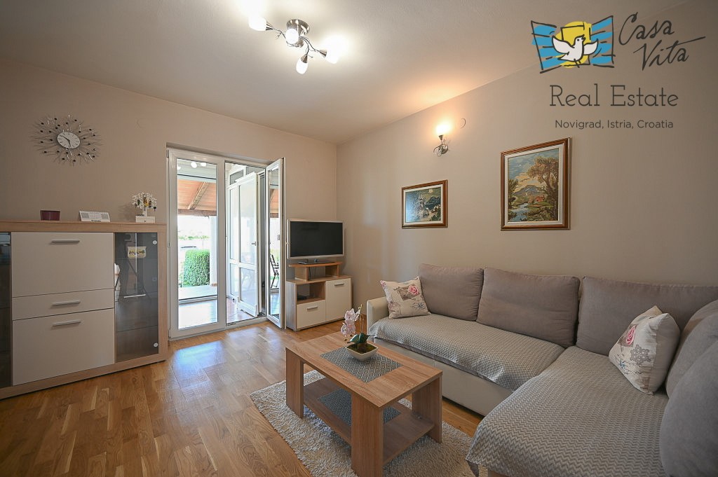 An apartment of 61 m2 located on the ground floor of a residential building is for sale, type 2.5-room (2 bedrooms + living room with dining area), situated in a quiet and attractive location, 600m from the sea and 1000m from the center of Novigrad.