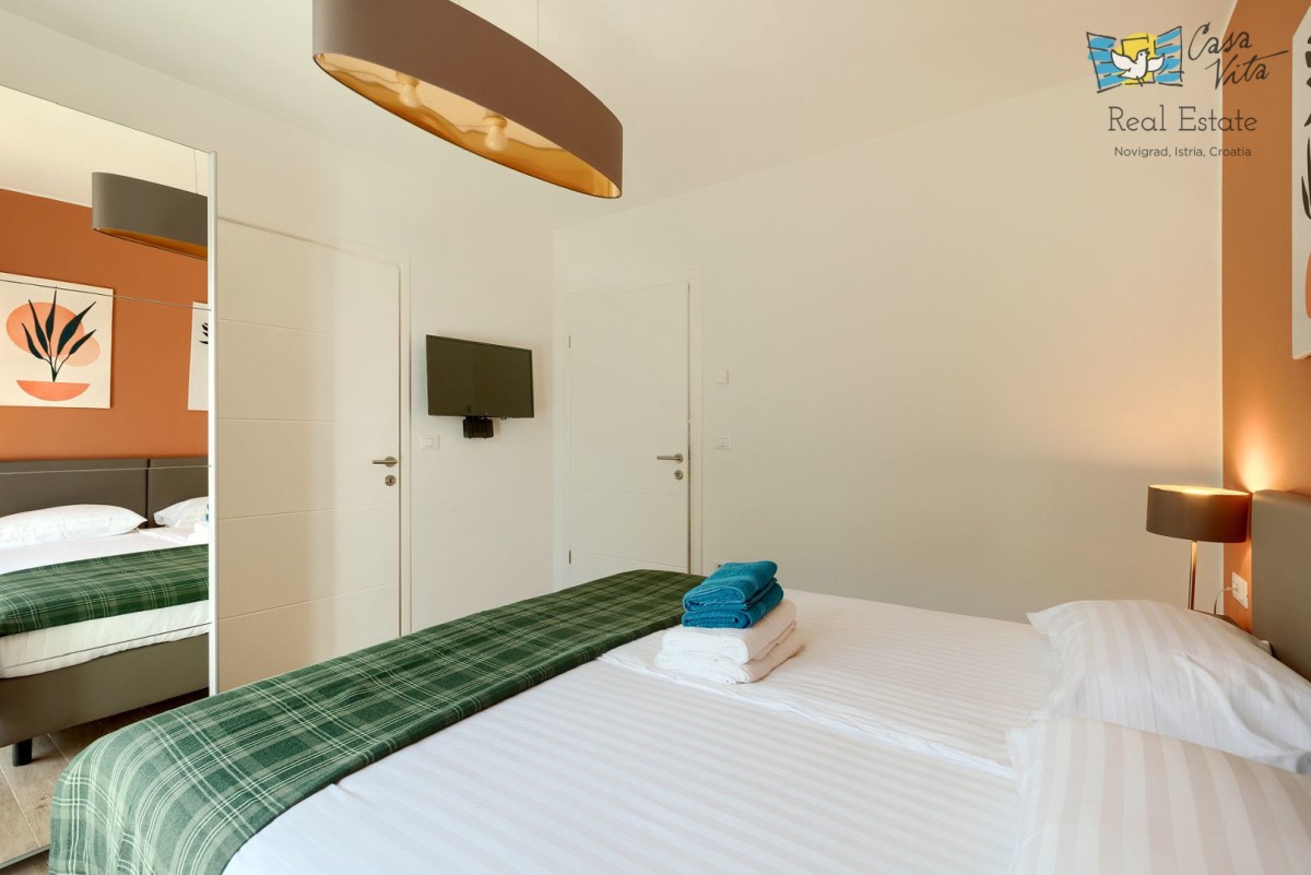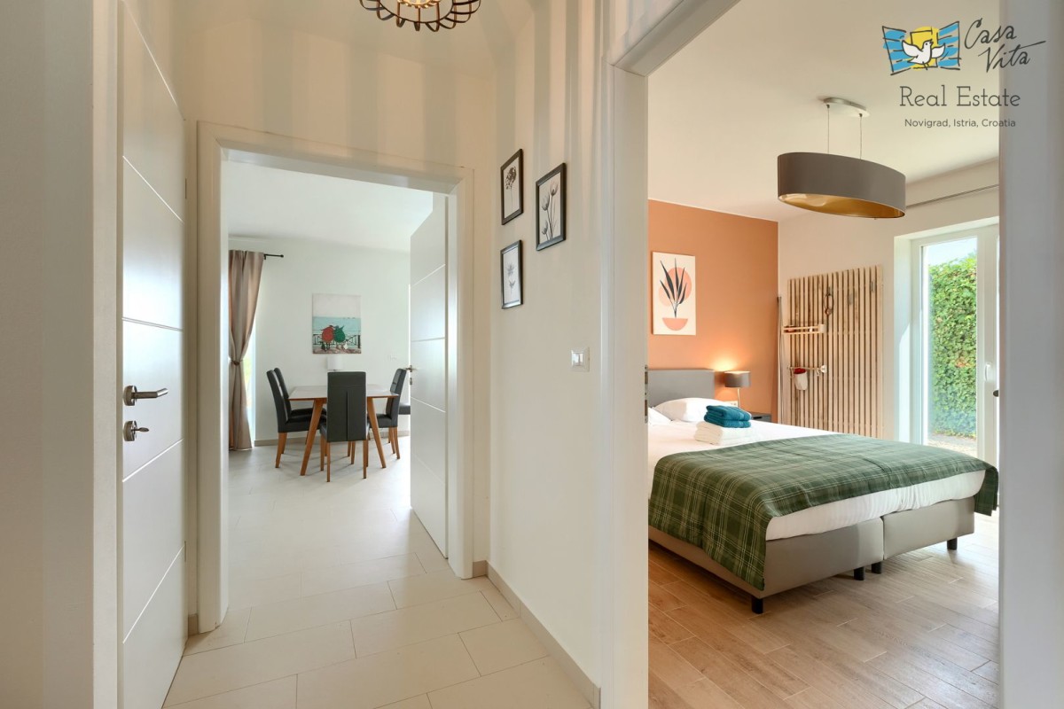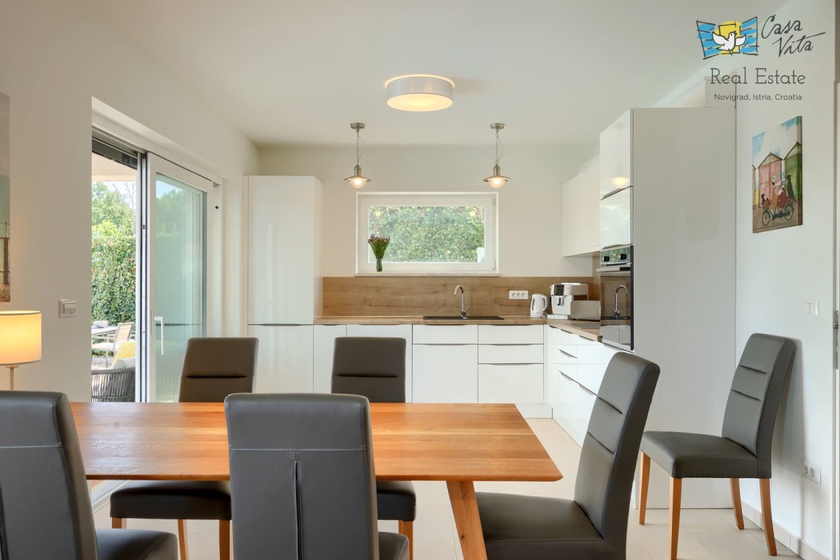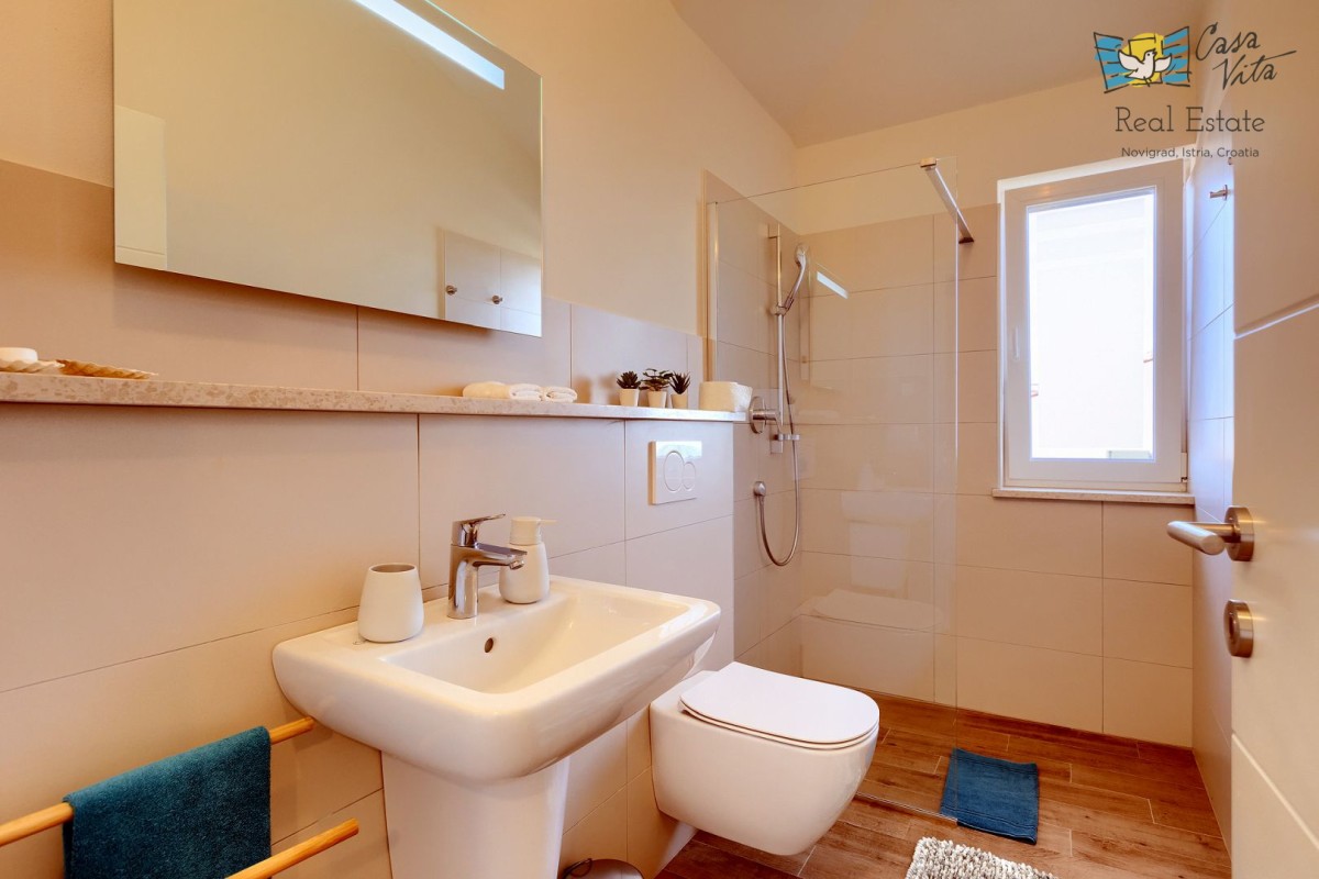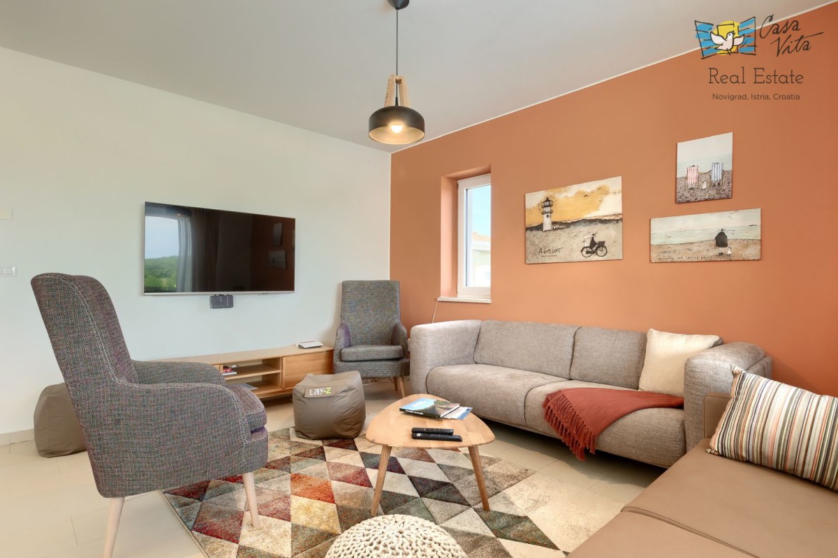 A detached house with an area of 240 m2 built in 2019 is for sale, located in a quiet place 7 km from the town of Novigrad. This property offers a combination of modern construction and an attractive location, making it an ideal choice for those seeking a quality home by the sea.