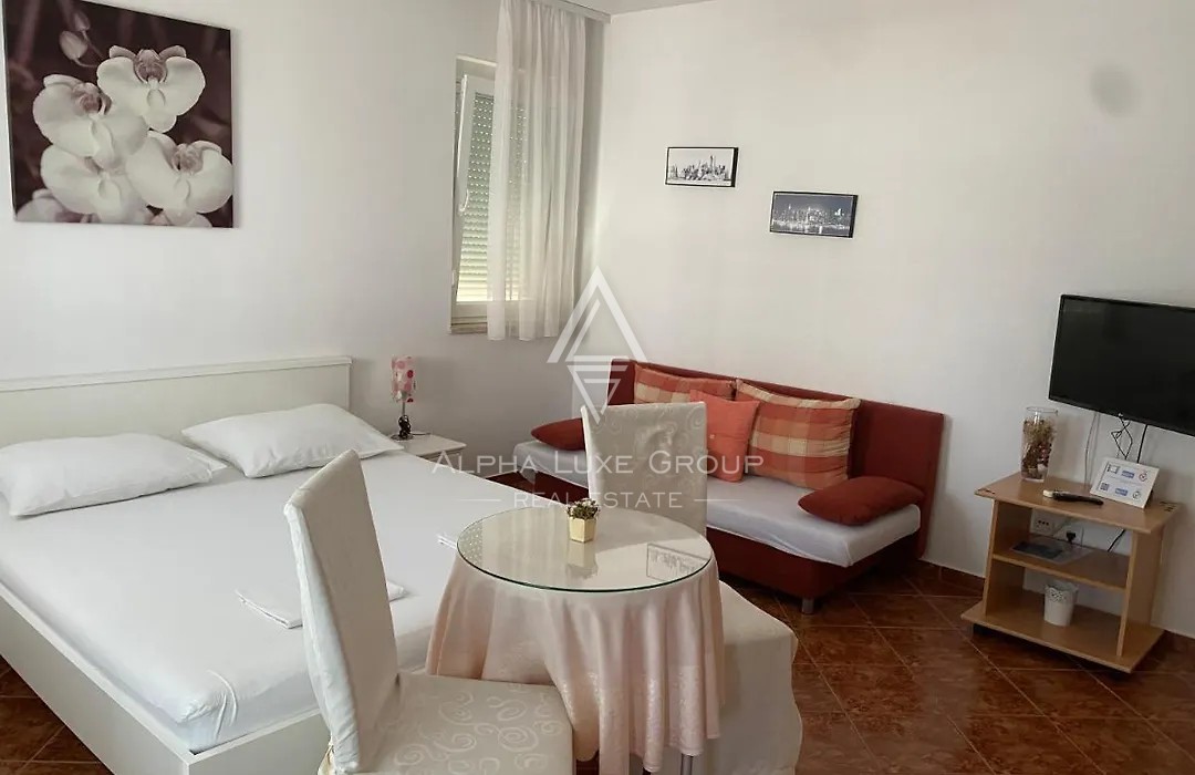 Discover an excellent investment opportunity in Medulin with this spacious apartment house for sale, located just 500 meters from the coastline. Spread across three levels, the property includes 11 residential units, consisting of 10 fully equipped holiday apartments and one comfortable family apartment. With 523.75 m² of living space plus a 50 m² auxiliary building, the estate offers strong rental potential and an established tourism business ready for continued operation.