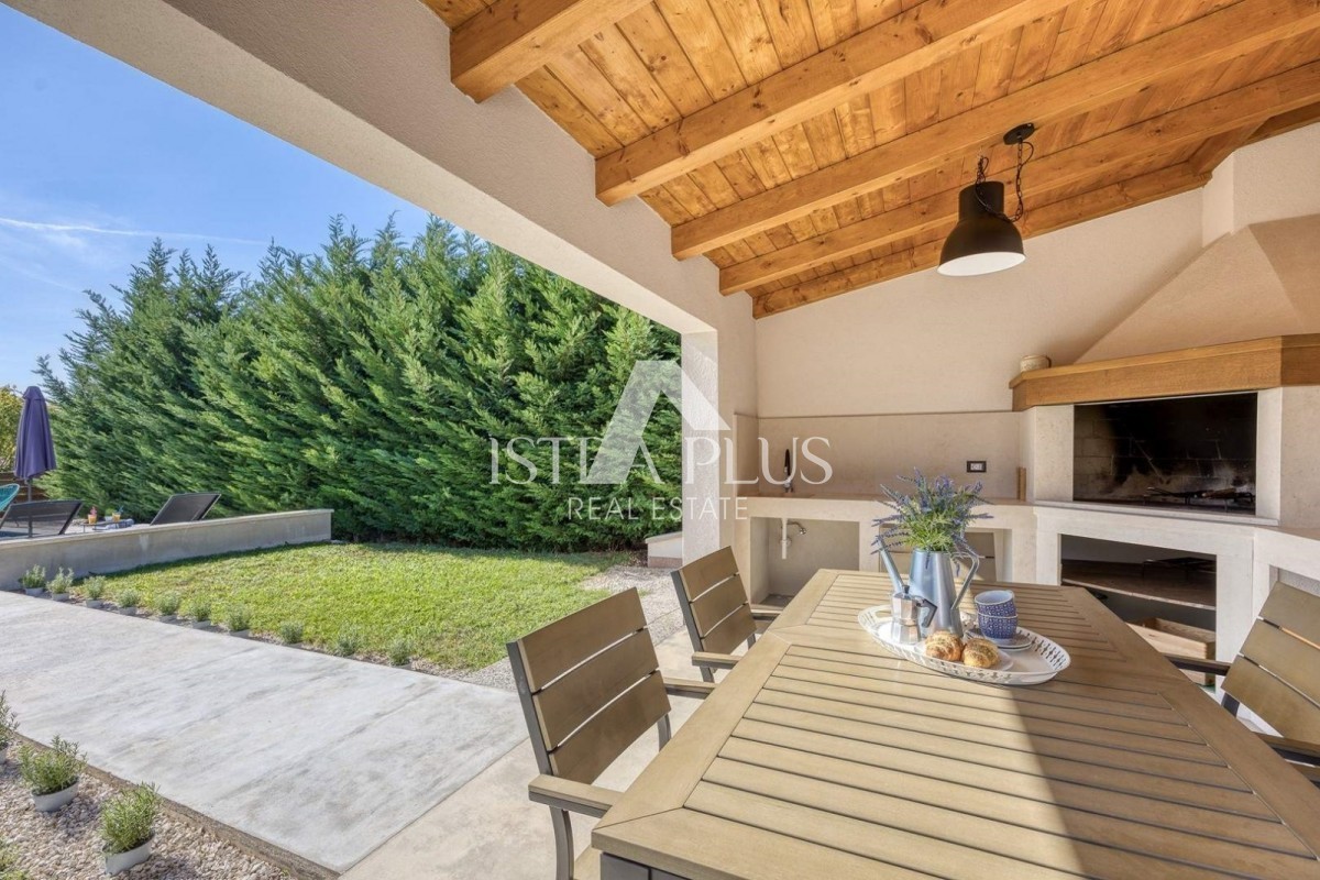 A beautiful detached house with a contemporary design, with a swimming pool and a covered summer kitchen, ideal for enjoying a relaxing environment, is for sale.