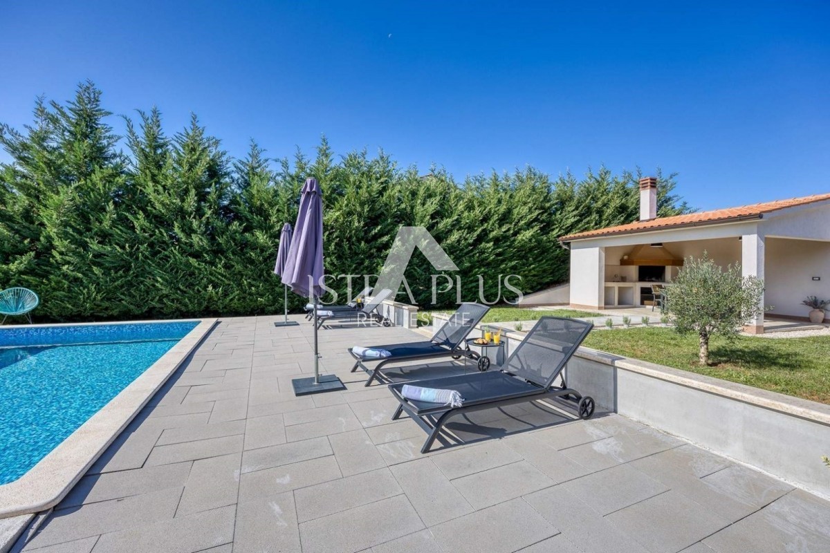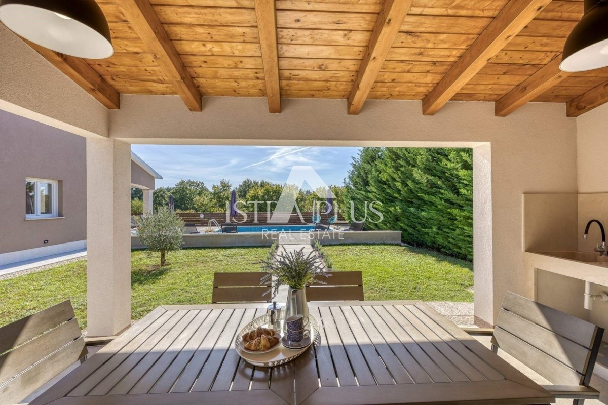 Modern single-storey house with swimming pool and summer kitchen