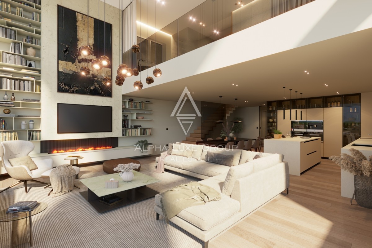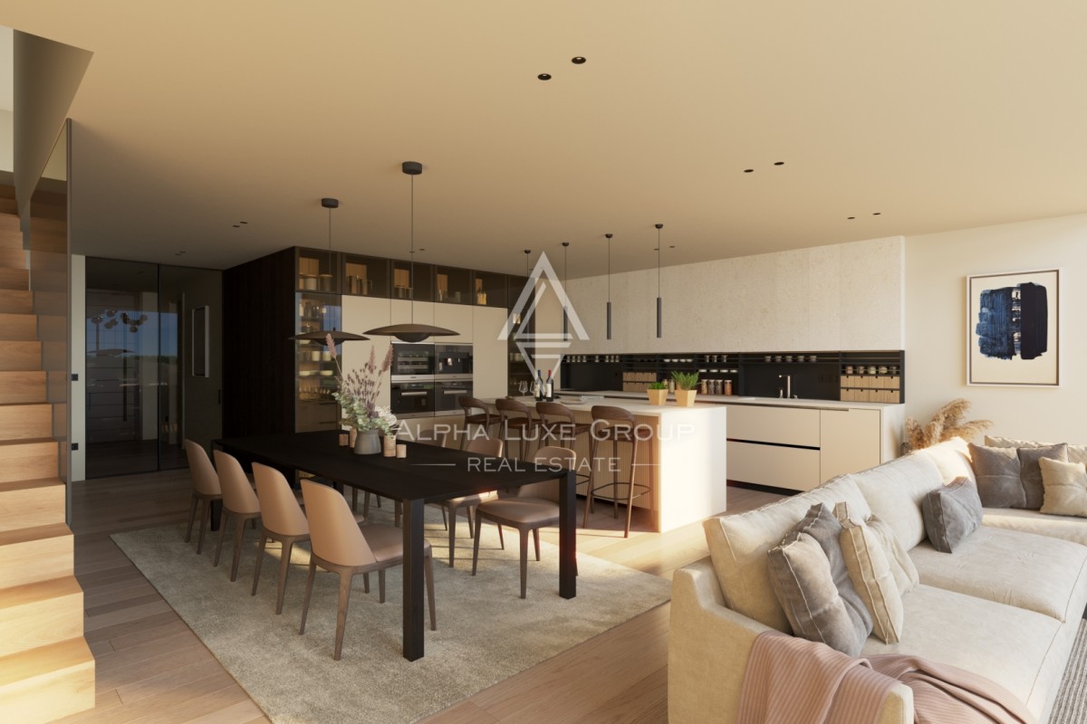 Custom made aluminum joinery, electric blinds, and architecturally planned interior and exterior lighting contribute to the sophisticated ambiance. The property also benefits from video surveillance with smartphone control, an automatic entrance gate, landscaped surroundings with an automated irrigation system, and two elevators within the building. A traditional tavern style space of 57 m2 is located on level minus two, while three secured garage parking spaces are provided on level minus one. The building is currently in the construction phase with completion scheduled for July 2026.