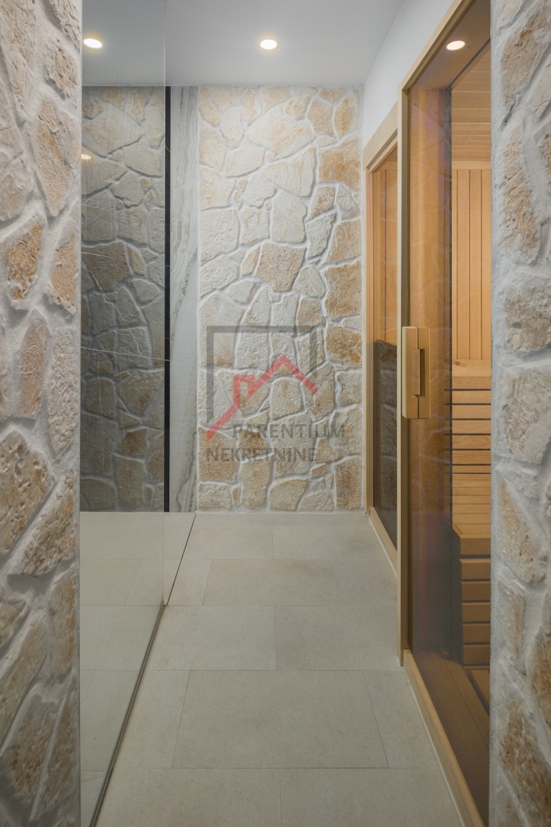The villa is equipped with modern systems such as smart heating, underfloor heating, air conditioning in all rooms, solar panels for hot water and video surveillance. There is also a sauna for added luxury.