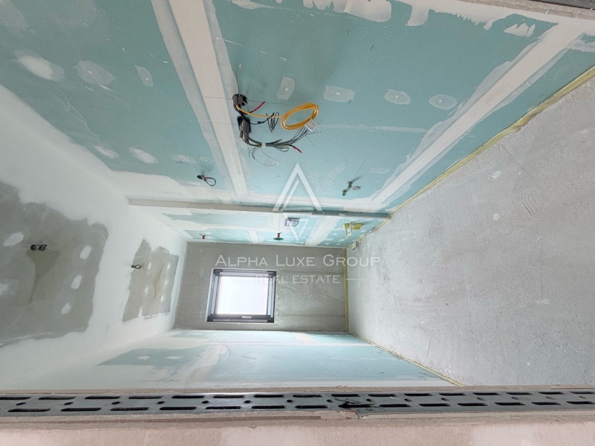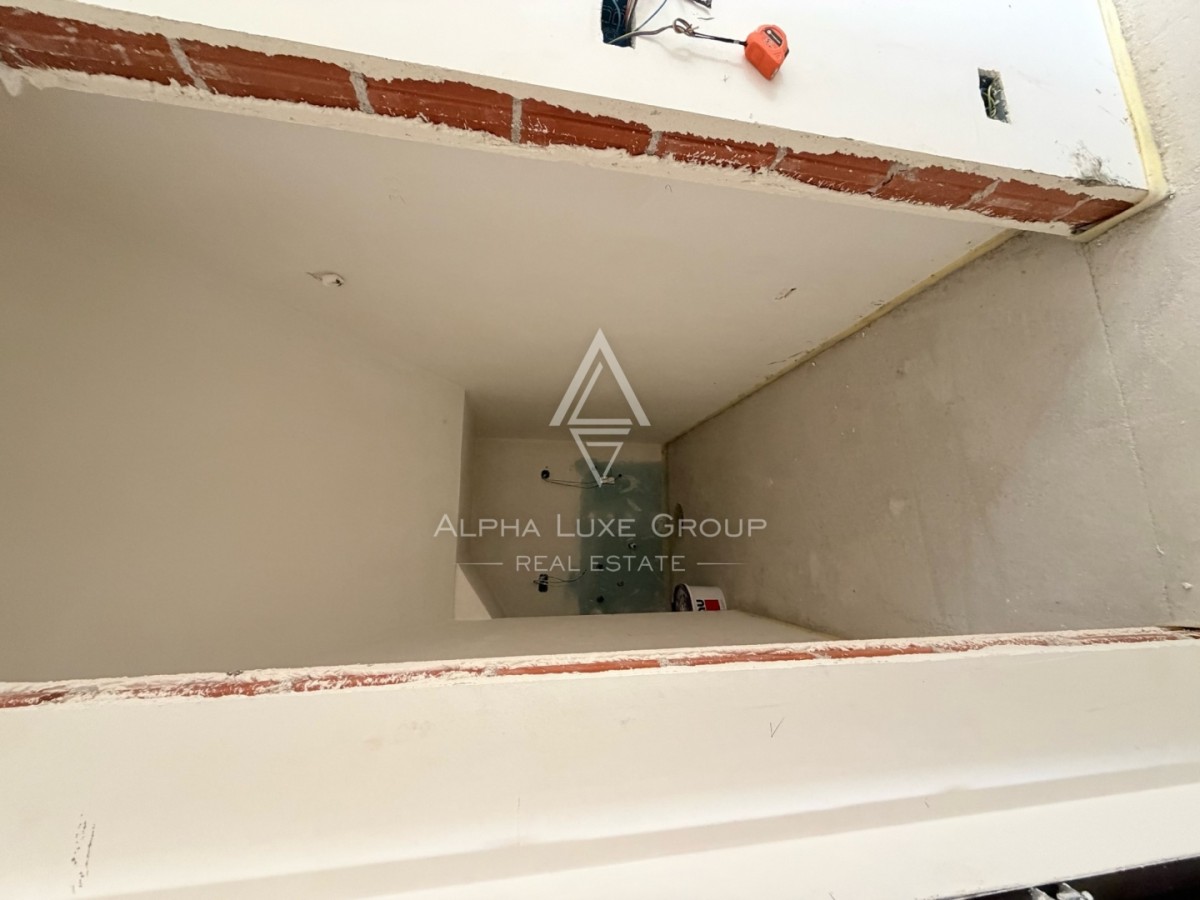 The living room opens onto a spacious terrace, which serves as the standout feature of the property. From here, you can enjoy uninterrupted panoramic sea views, creating a unique and relaxing outdoor environment. Installations for a summer kitchen are already in place, offering the potential to create a perfect outdoor dining and entertainment area.