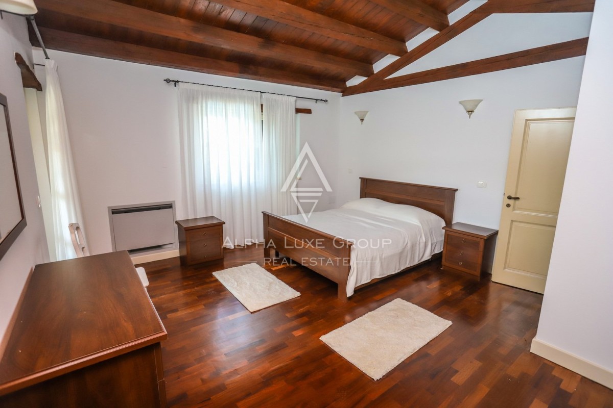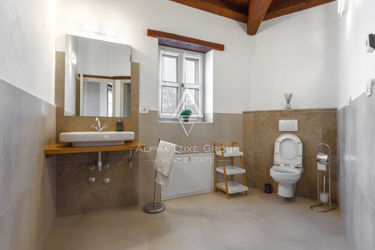 Discover this expansive detached villa set in a peaceful locale near the quaint town of Tinjan, Istria, enveloped by a sprawling 2,347 m² plot. Designed for ultimate privacy and comfort, the villa’s layout includes both ground and upper floors, perfectly suited for residential or lucrative rental opportunities.