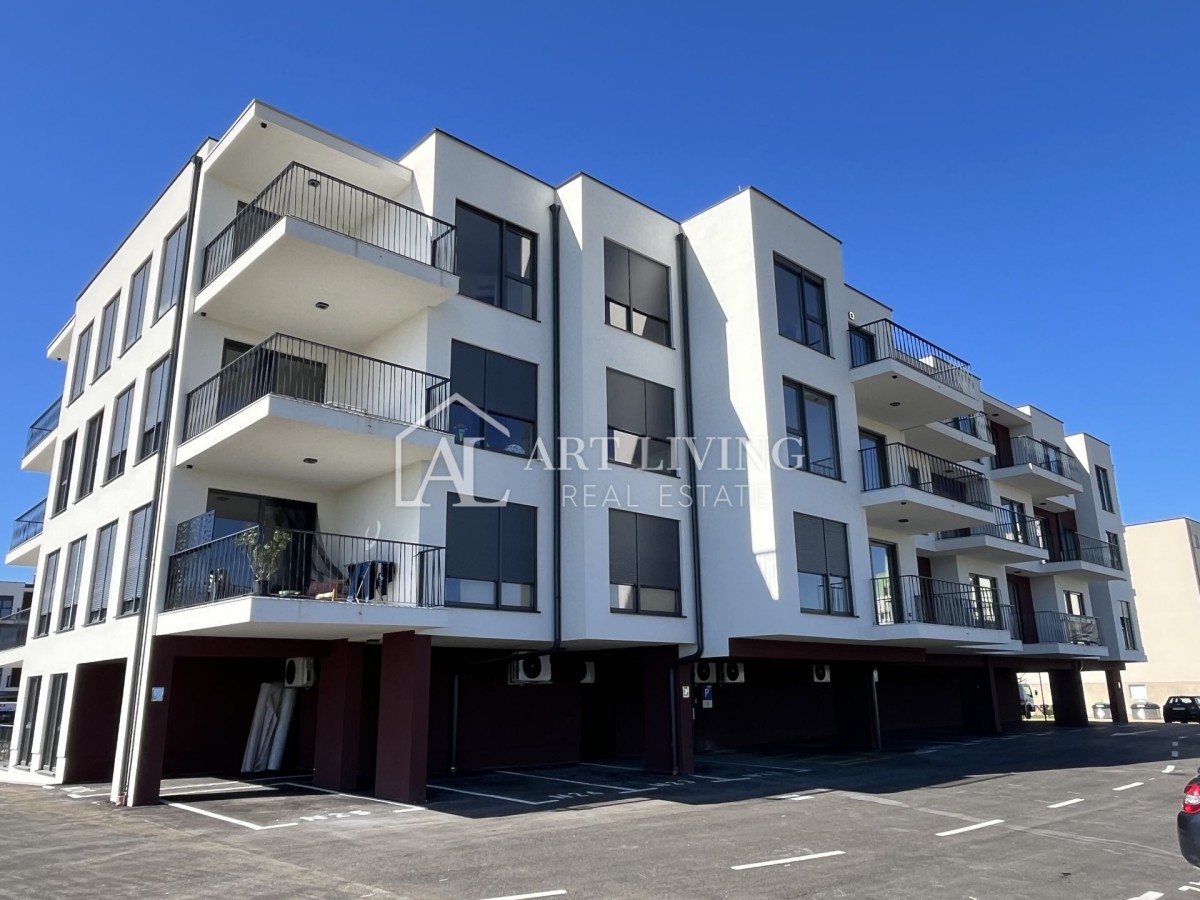 The apartment is located on the 3rd floor of a new, modern building with an elevator. The total net area of the apartment is 83.33 m2. It consists of a living room with kitchen and dining room, two bathrooms and two bedrooms. The living room leads to a balcony of 6.02 m2. The apartment includes a laundry room, one garage parking space and one outdoor parking space.