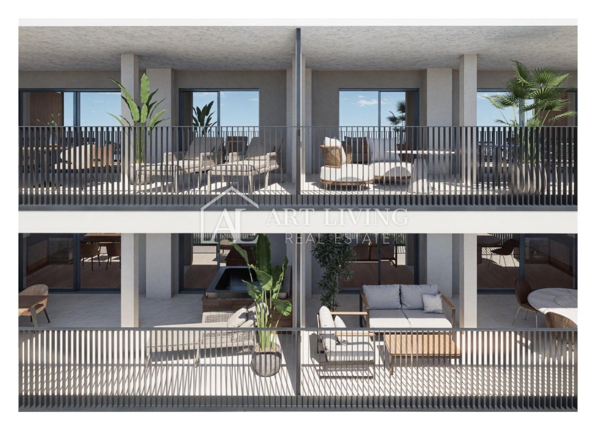 A modern two-bedroom apartment for sale in a new residential building with a total of 57 apartments, located only 700 m from the sea and the center of Umag and the beautiful Umag promenade.