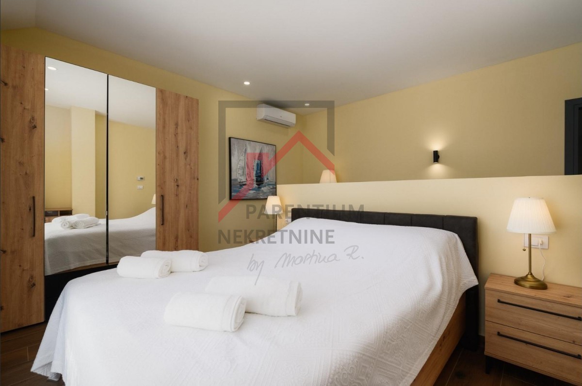 A fully furnished and equipped villa of 186 m², with a heated pool of 38 m², built in 2023 according to the highest EU standards, is for rent. Located in the quiet village of Maružina, the villa offers complete comfort, privacy and a sea view towards Rovinj.
