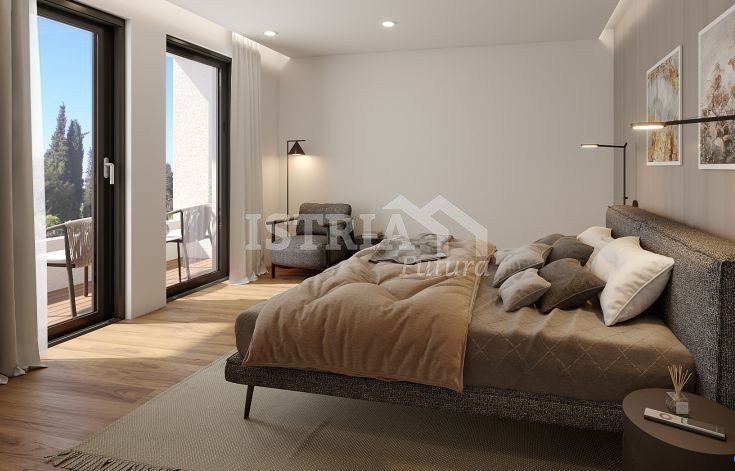 For sale, a luxurious apartment of 122 m2, located on the ground floor of a smaller building with only 6 apartments, only 400 meters from the center of Rovinj and 600 meters from the sea!