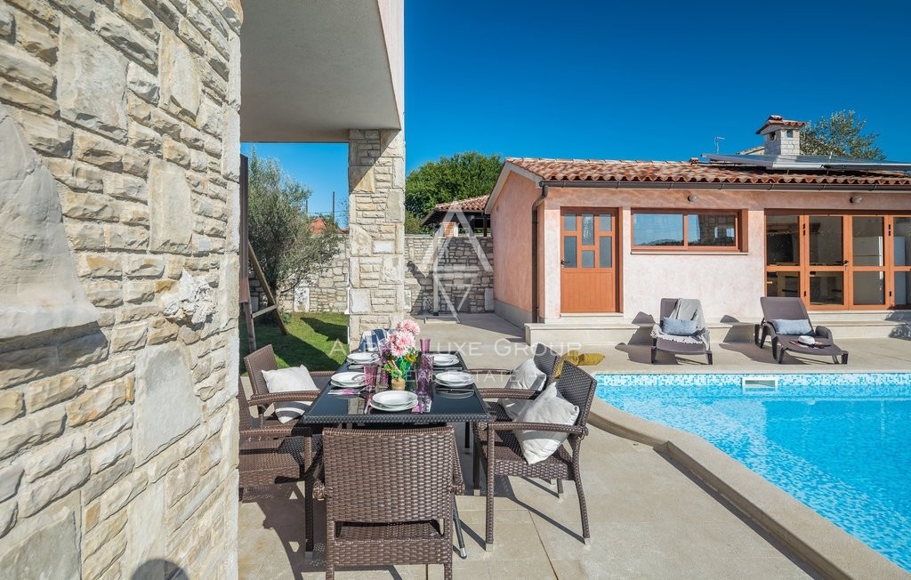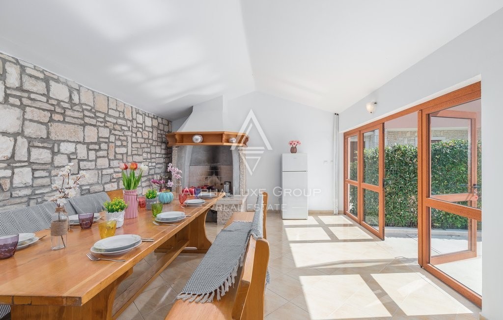 This home has a living space of 160 m2 and is located on a plot of 340 m2. The house is a small village and has a fenced garden with a pool.