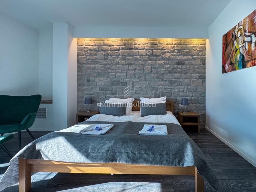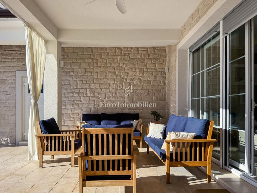 A special feature is the wellness area with direct access from the terrace, including a sauna, shower, toilet, and heated Laconium.