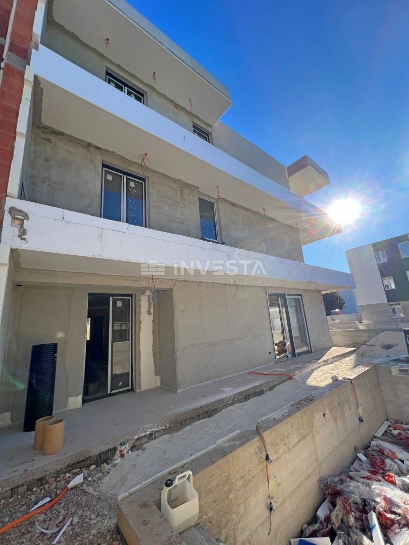In a quiet part of Medulin, just 300 m from the seafront, a two-story apartment with a pool is for sale, spanning the ground floor and first floor of a new building.
