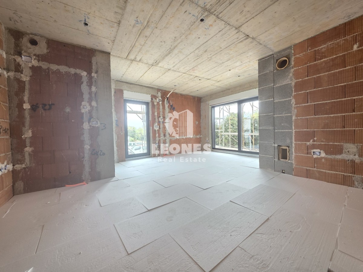 A modern apartment with a garden 600 m from the sea near Umag is for sale. The net usable area of the apartment is 109 m2 and is located on the ground floor of a residential building with a total of 6 residential units. The apartment consists of a living room and kitchen, 2 bedrooms, 2 bathrooms, a terrace, a utility room and a garden of 115 m2.