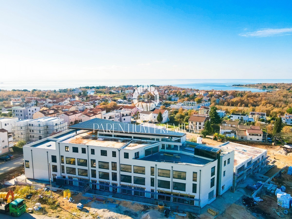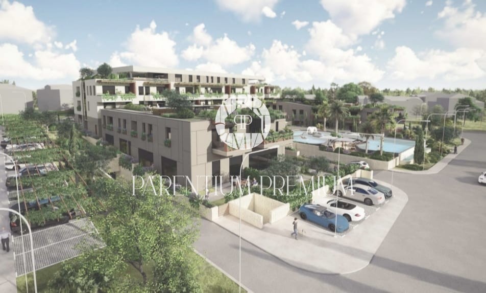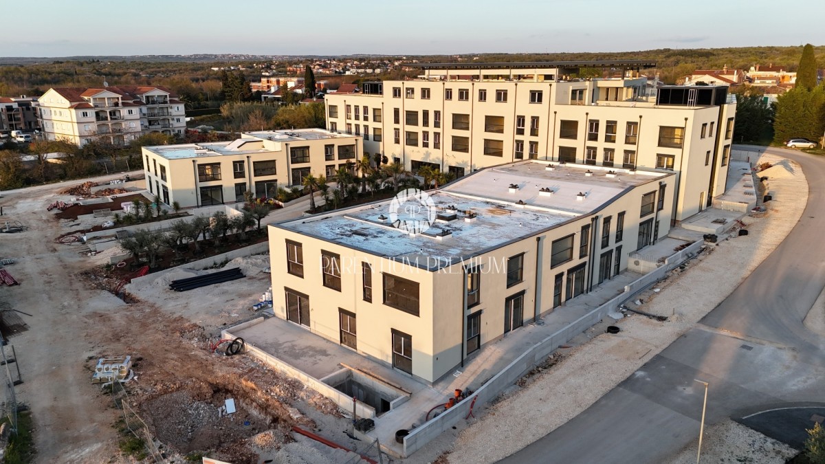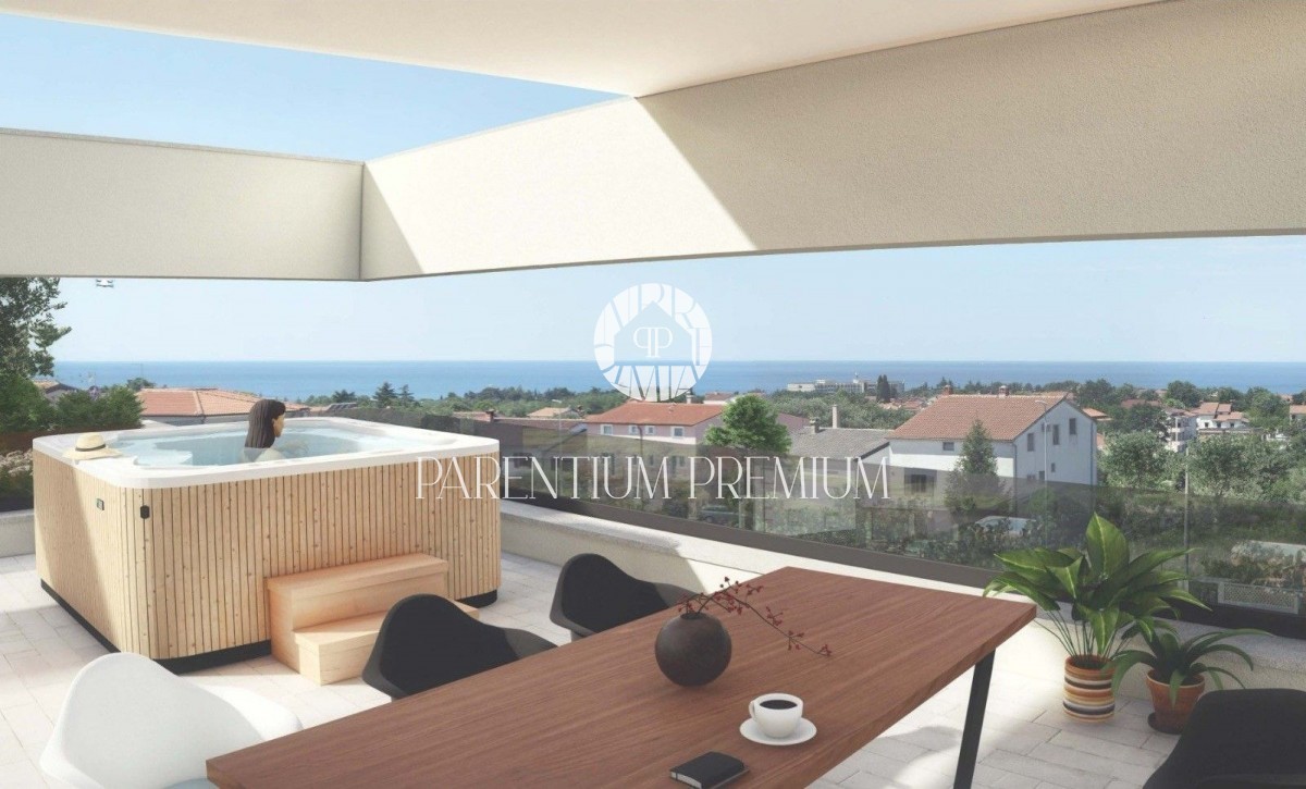 Luxury penthouse for sale on the 3rd floor C302 in a luxurious residential and commercial building with an impressive area of 147.2m2 with a swimming pool and a roof terrace with a great view of the city of Poreč and the sea.
