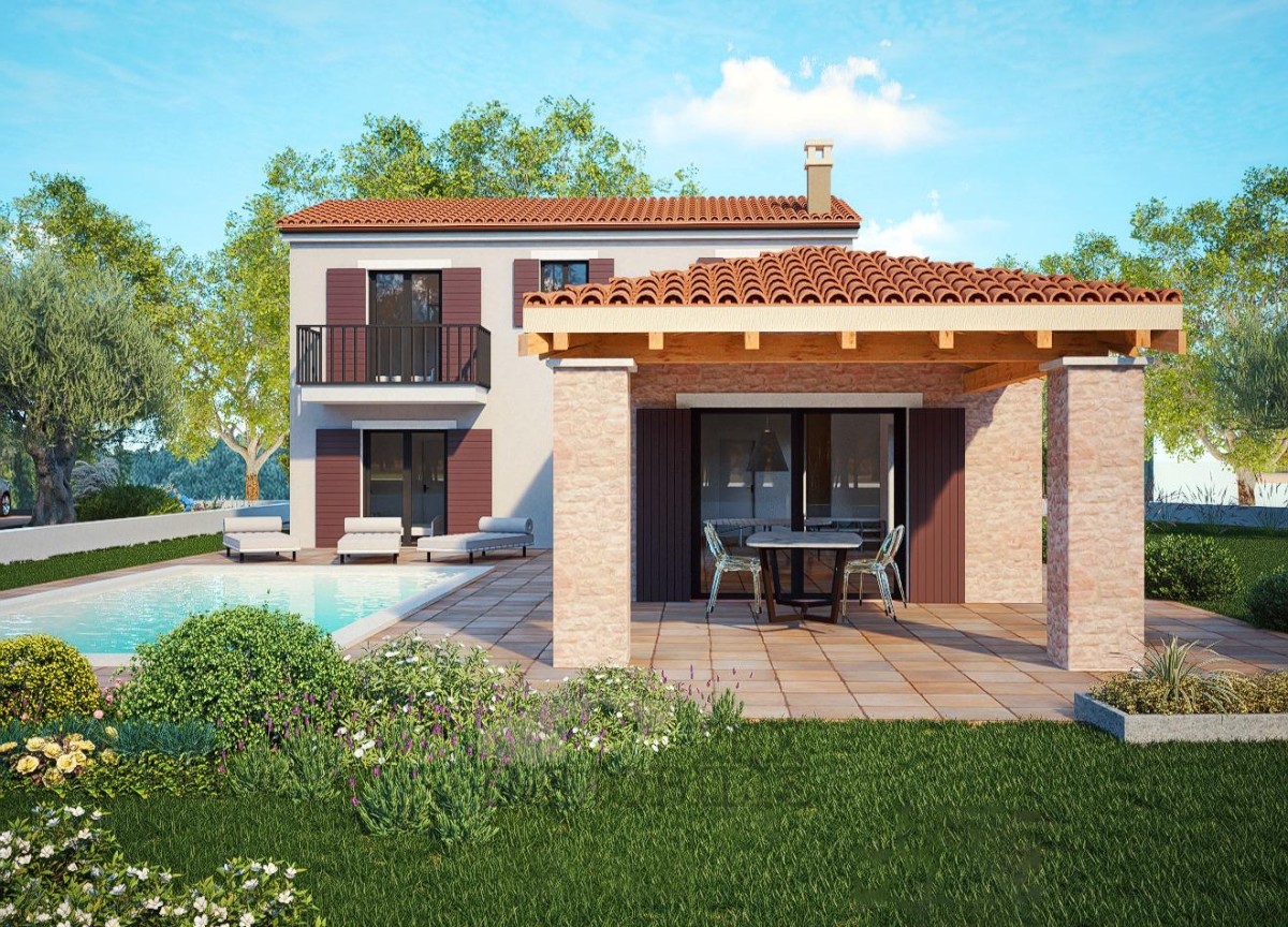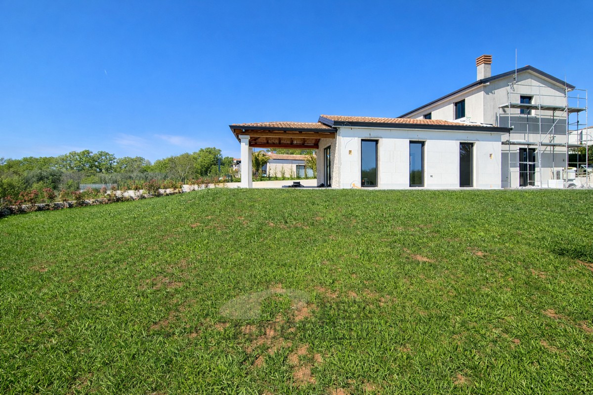 For sale is a luxurious modern villa with a swimming pool, perfectly located with a beautiful view of the sea, only 8 kilometers from the coast and 10 kilometers from the center of Poreč.
