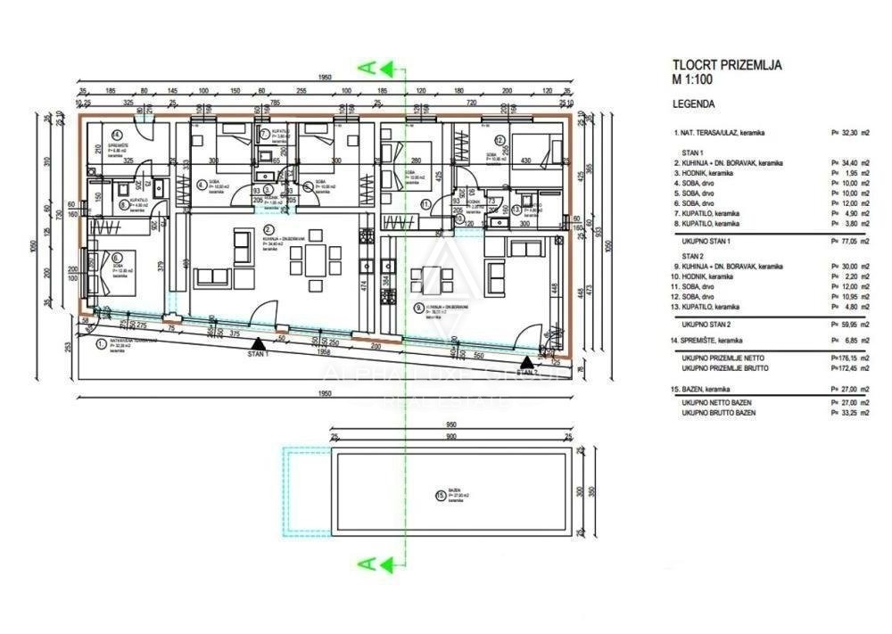 a new building of modern design with a swimming pool for sale with a living area of 176,15 m2 on a Plot square of 798 m2