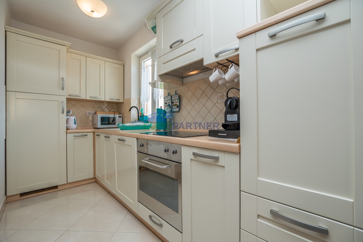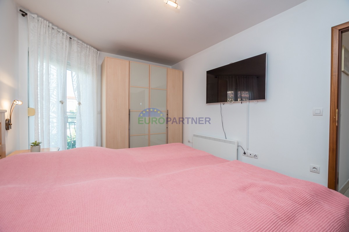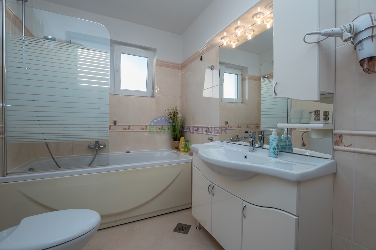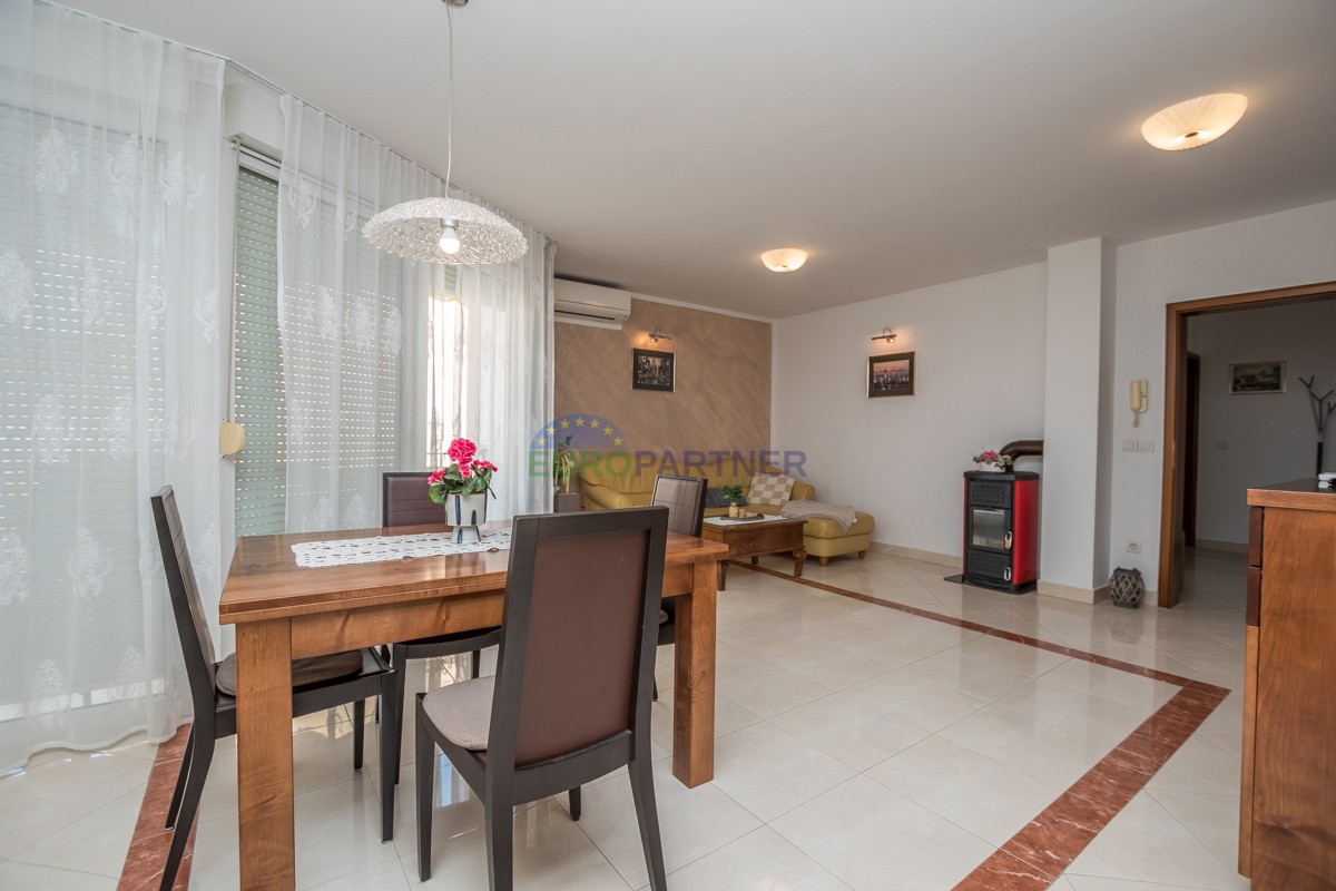 This spacious duplex apartment of 90 m2 is located in a quiet residential area of ​​Poreč, just 800 meters from the sea and beach and 3 km from the picturesque city center. It is located on the first floor and offers the perfect combination of comfort, functionality and a beautiful sea view.