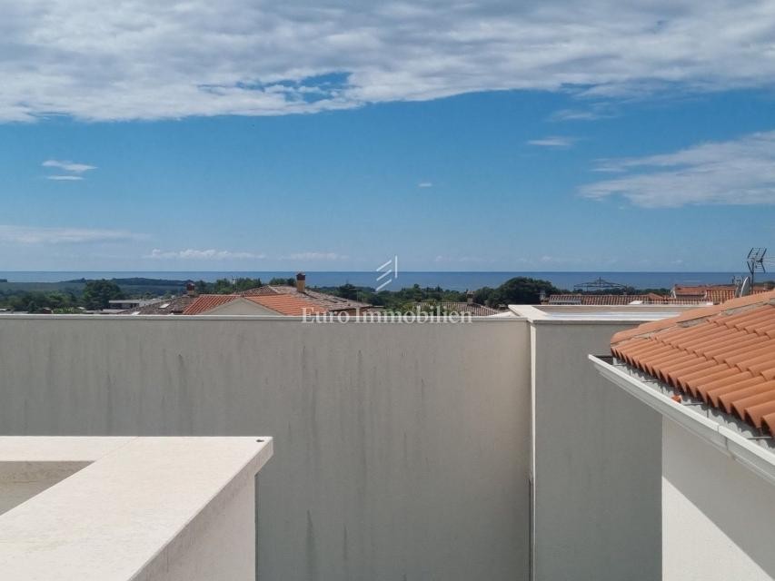 Luxury detached villa with a gross area of 237.4 m², located in a quiet residential neighborhood near Poreč, on a 595 m² plot. The villa consists of a ground floor, first floor, and a roof terrace of approx. 53 m² with open sea views.
