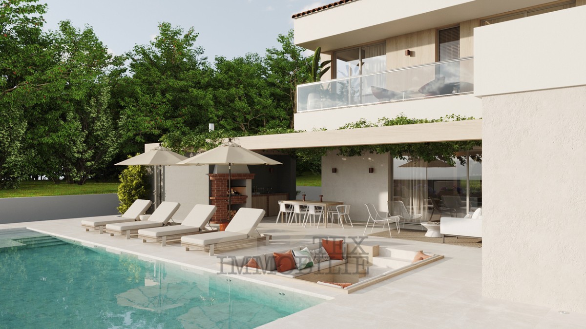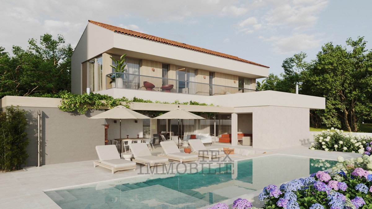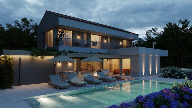 Attractive building plot located in a peaceful area near Poreč, just 7 km from the sea and 10 km from the city center. The land comes with a completed project and a valid building permit for the construction of a modern villa with 3 bedrooms.
