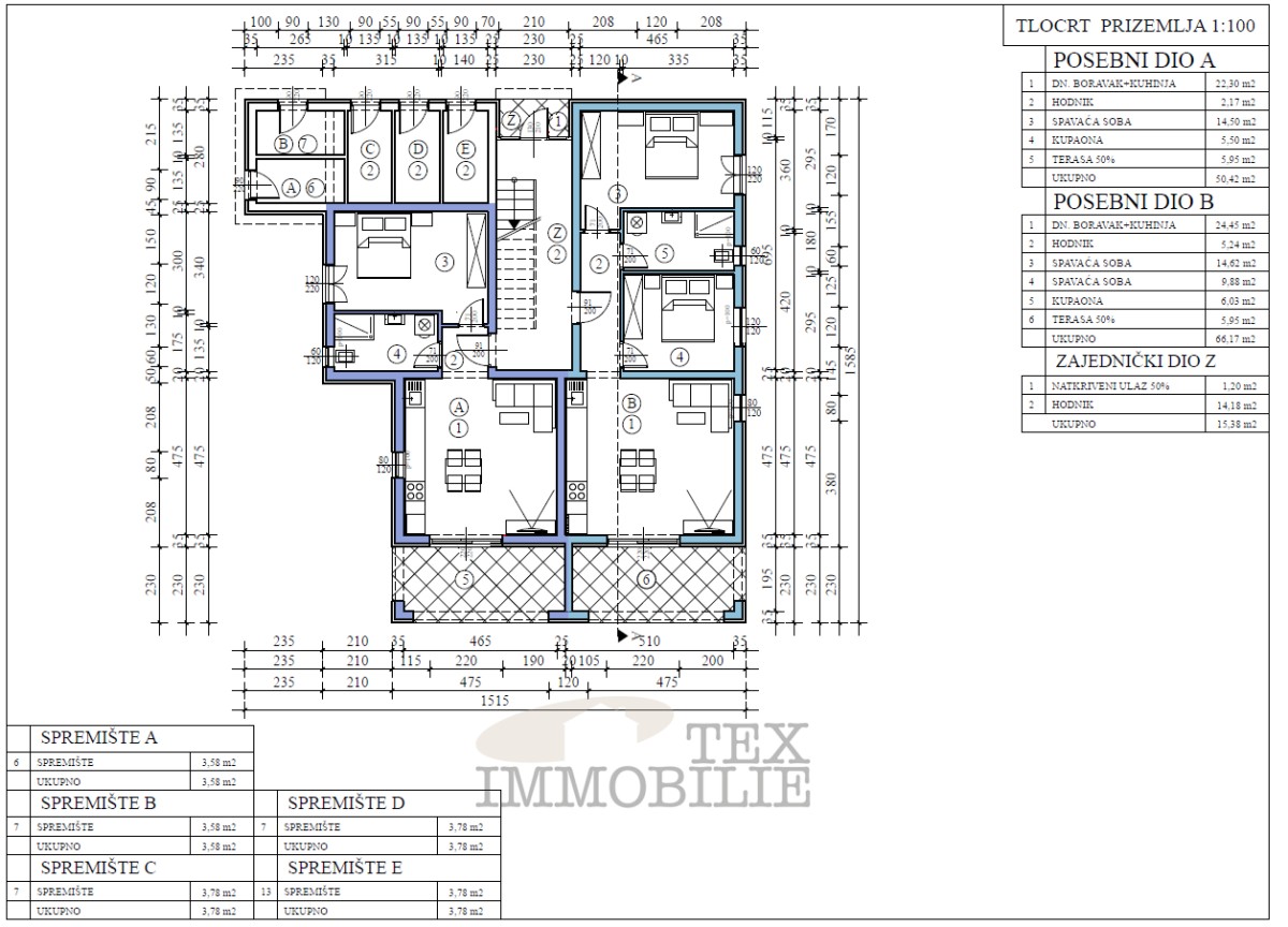Area: 50.42 m2 net area + 3.58 m2 storage room + 360 m2 yard.