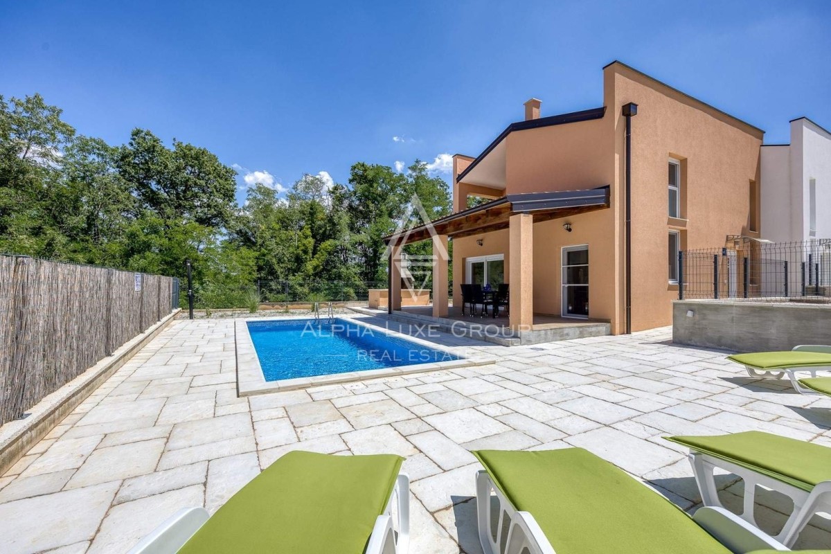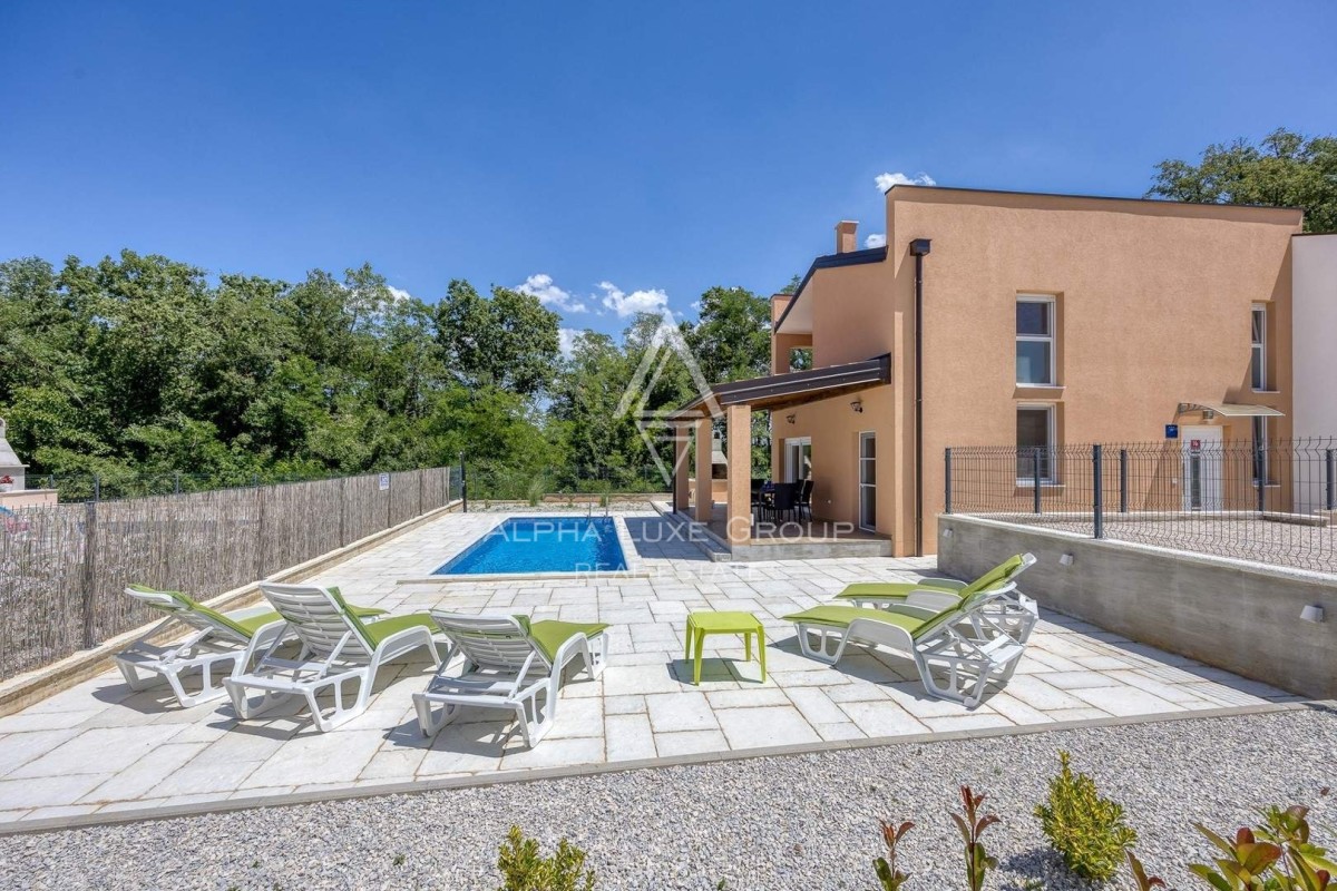 Discover a rare gem in the real estate market—a pair of duplex homes, each boasting its private pool and dedicated parking space. Situated in a tranquil area close to Poreč, these properties are nestled on a 706 m² plot, offering a blend of elegance and privacy. Designed with meticulous attention to detail, each home spans 85 m² across two floors, creating an ambiance of luxurious autonomy.