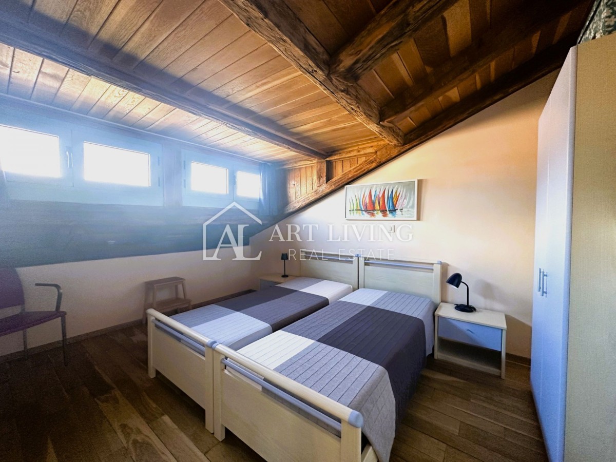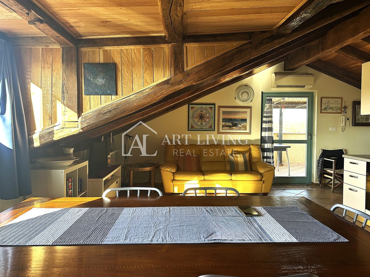 A charming attic apartment is for sale in a quiet and pleasant residential area, only 6 km from the sea, beautiful beaches, and the center of Poreč.