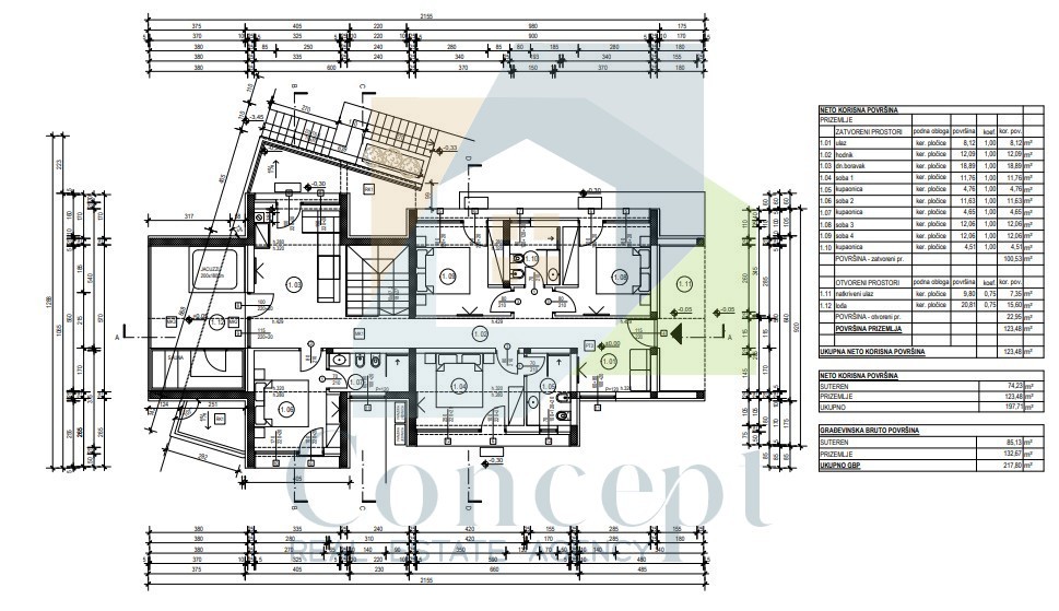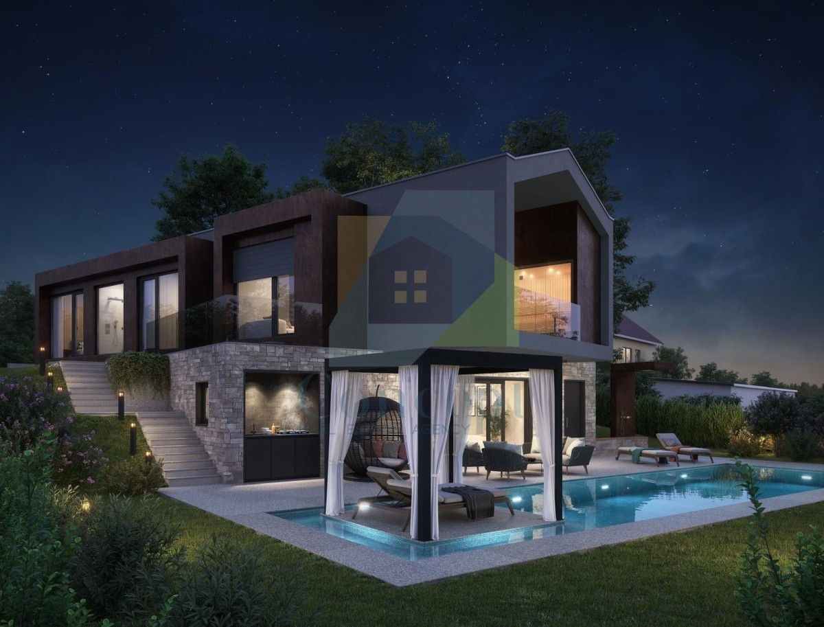 This modern property will consist of approximately 200 m² spread over two floors. The ground floor will feature a spacious living room with a wood-burning fireplace, connected to the kitchen and dining area in an open space concept, a storage room, a guest toilet, and a boiler room. From the living room, through a large glass wall, you will access the terrace where a summer kitchen and a heated swimming pool measuring 56 m² will be situated, perfect for enjoying warm days.