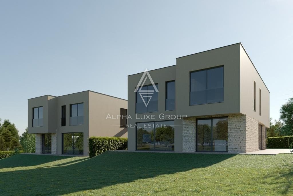 Unearth this stunning creation in the serene fringes of Poreč. This home, an epitome of modern design, sprawls over 220 m^2 on two distinctive floors. On entering, the ground floor offers a protected gateway leading to a spacious hallway. It opens to a harmoniously merged living room, kitchen, and dining area. Additional features on this floor include a sophisticated cloakroom, a guest toilet, a functional space, and a seasonal kitchen. Ascending to the first floor, you're introduced to a hallway directing you to four generous bedrooms. Each room boasts an ensuite bathroom and opens up to either a balcony or a radiant terrace. Enhancing the property's charm is a thoughtfully designed 480 m^2 garden, complete with a heated 4x9 m pool, lush greenery with irrigation, and an automated gate leading to parking for 2-3 cars. The home is finessed with PVC and aluminum joinery, chic ceramics, and is equipped for utmost security.
