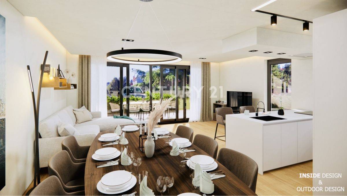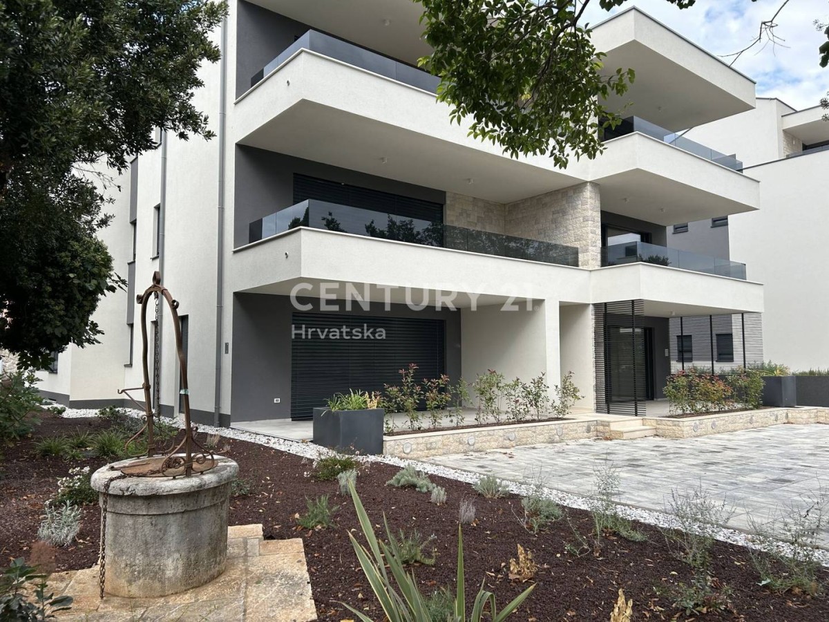 In the very center of Rovinj and only 400 meters from the sea and well-kept beaches, this modern apartment with a garden is for sale, on the ground floor of a unique smaller building of attractive and modern architecture with a total of 6 apartments.