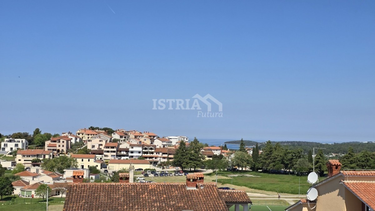 The apartment consists of an entrance hall, storage room, spacious living room with dining area and kitchen, covered terrace with an open view of Vrsar and the sea, bedroom with en suite bathroom and another bedroom and another bathroom.