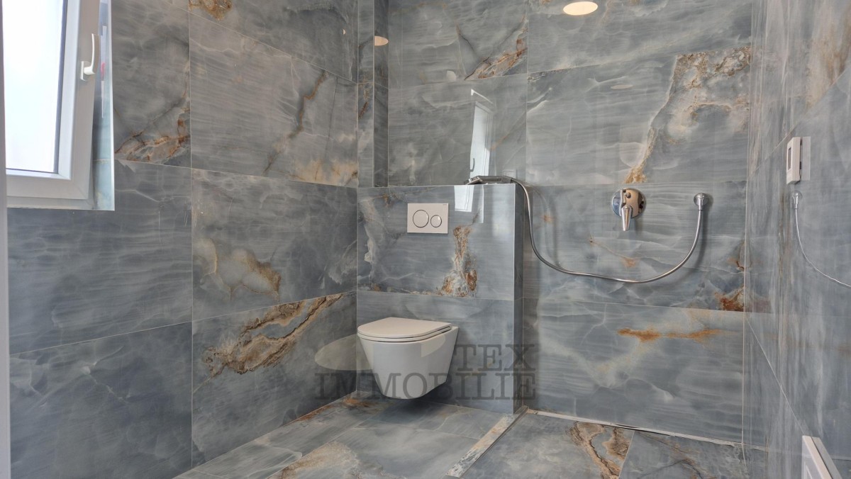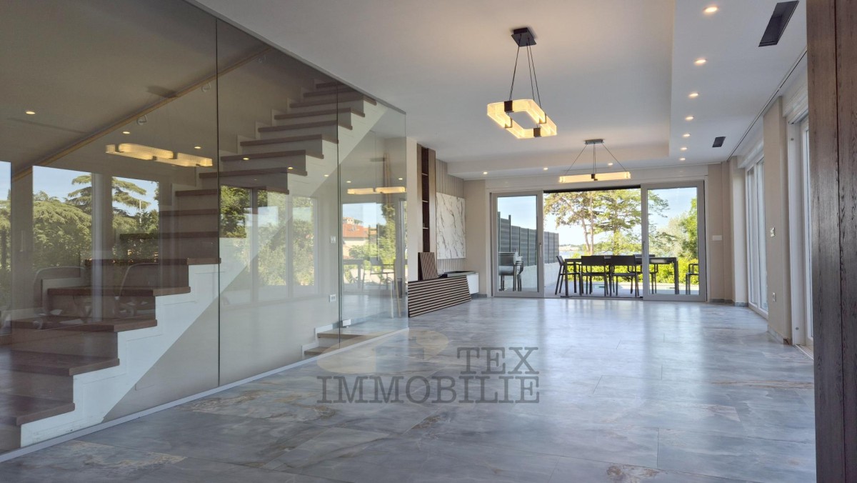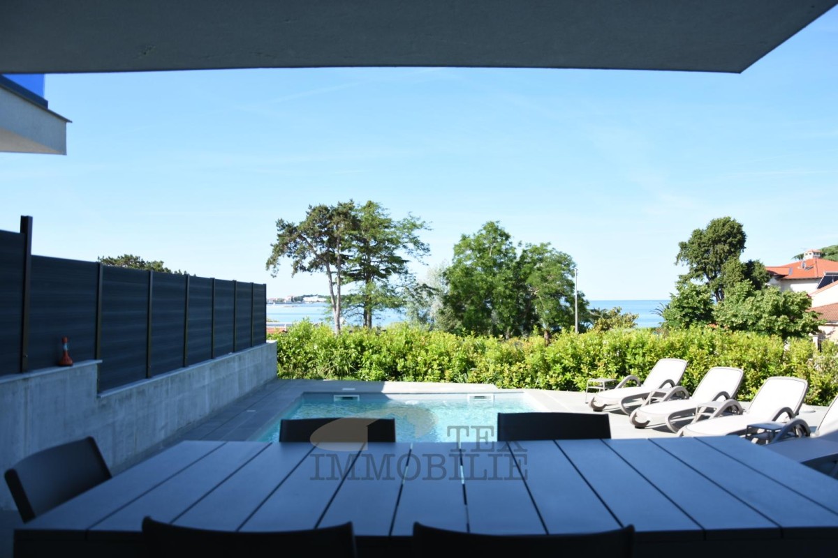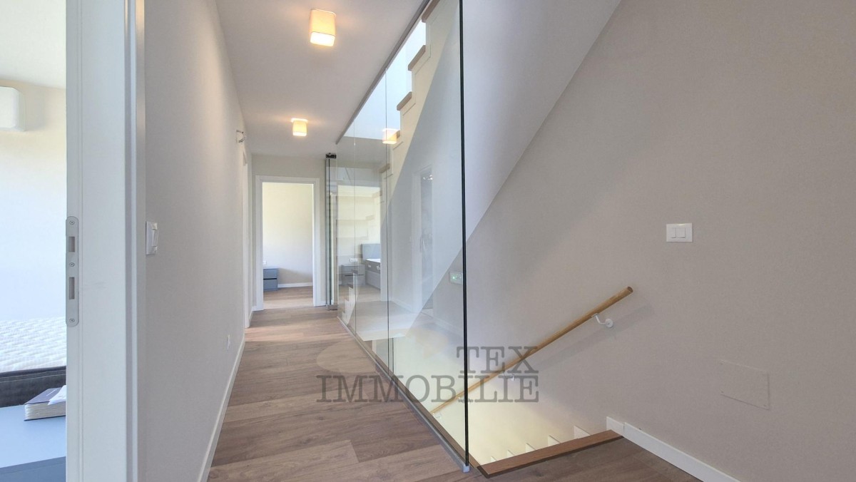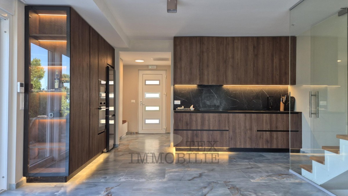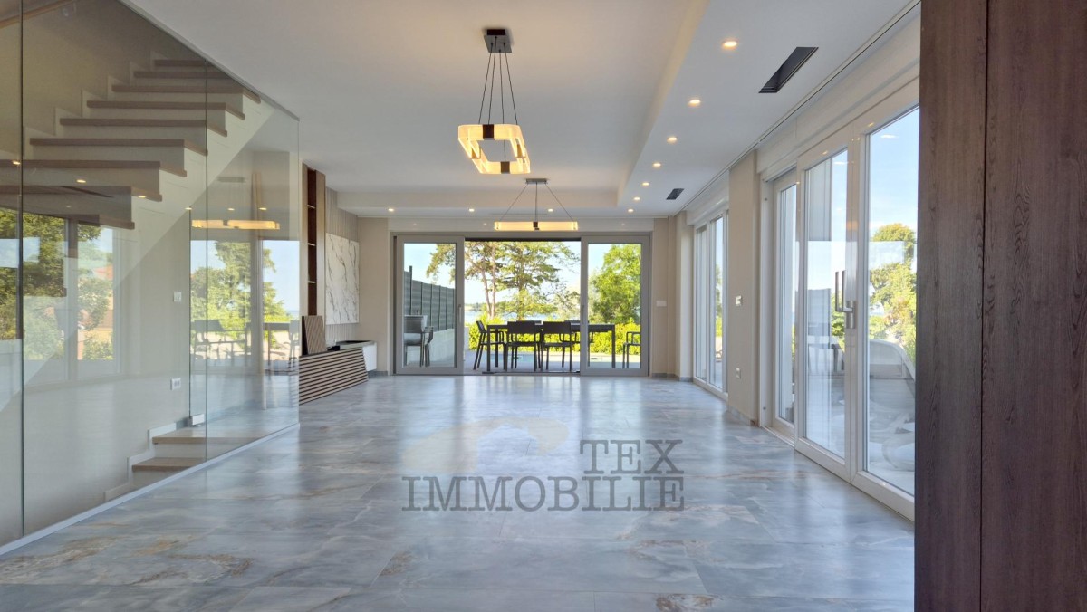 This beautiful semi-detached villa is located just 70 meters from a beach suitable for all ages, 150 meters from shops, cafés, and restaurants, and 2 kilometers from a well-maintained promenade along the sea leading to the center of Poreč.