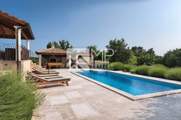 In the small village of Štokovci in central Istria, a holiday home with a swimming pool is for sale, located on a fenced plot of land measuring 2000 m2.