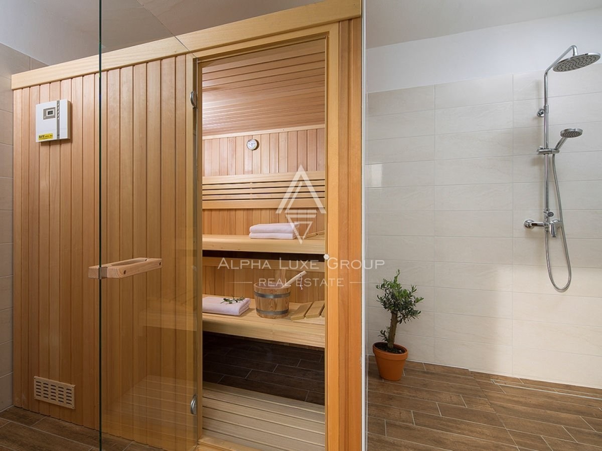 On offer are two contemporary single-story villas, each meticulously designed for comfort and style. The layout of each villa includes three luxurious bedrooms, all with en-suite facilities, a sophisticated living room, and an integrated kitchen and dining area that opens onto a vast covered terrace equipped with a built-in fireplace. The exterior is just as impressive, featuring expansive swimming pools and jacuzzis, perfect for relaxation or entertainment.