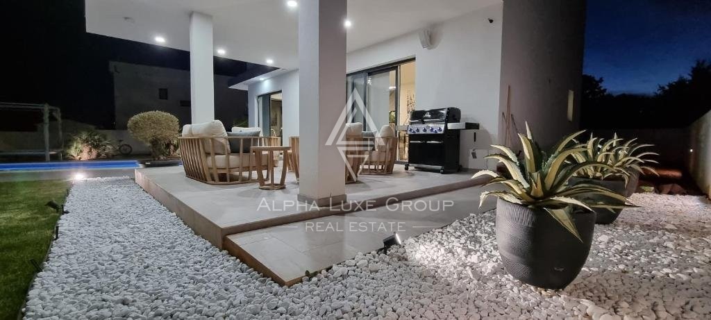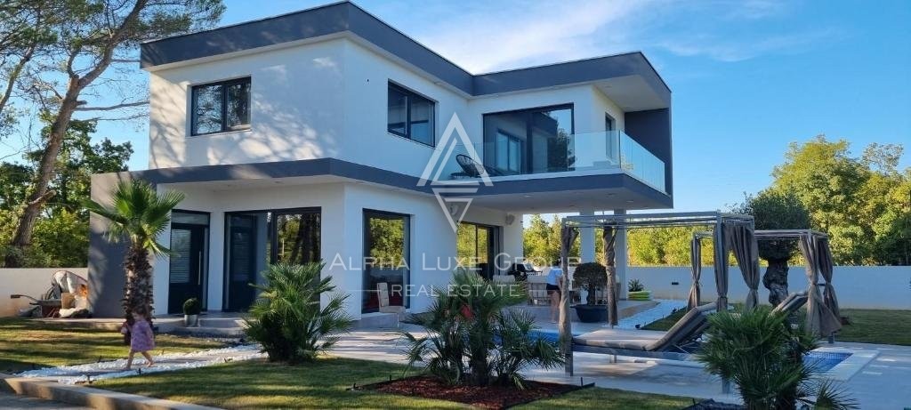 Located in a serene village within the Svetvinčenat Municipality, this captivating modern villa spans 160 m2 across two well-appointed floors, nestled within a spacious and meticulously landscaped 643 m2 garden, rich in verdure. The property promises a blend of contemporary luxury and natural beauty.